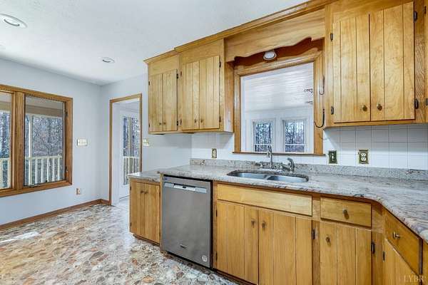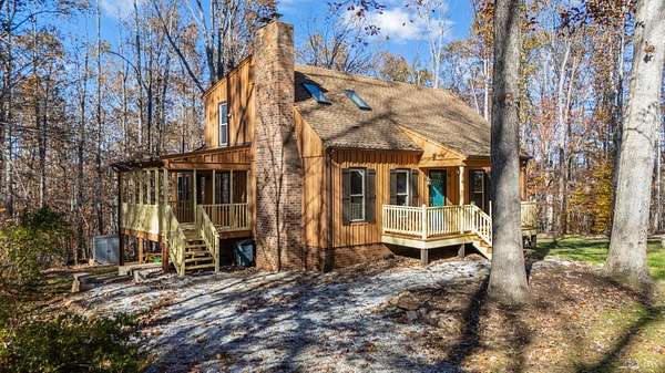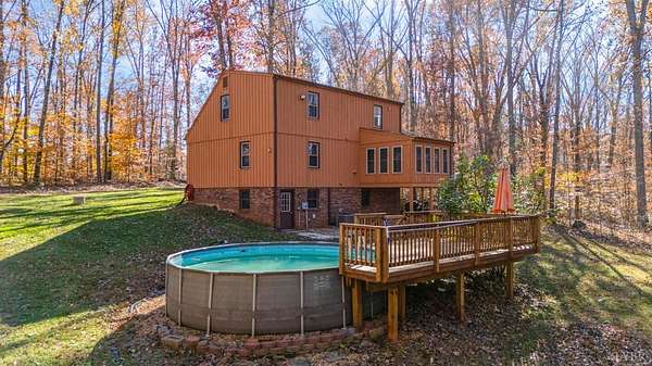 *Fly Through Video Available!* Move-In Ready Gorgeous home on a private 5 Acre lot with ~300 Feet of frontage on the Buffalo River! 235 Riversedge Lane has so much to offer, with over 2,200 Finished Sq. feet, 3 Bedrooms, 3 Bathrooms & 5 Acres of land on a quiet private road with easy access to 29 for an easy commute! The main living area feels well lit & spacious with 17 ft vaulted ceilings & skylights, but cozy with a wood burning fireplace & hardwoods. Kitchen w/ granite counters & ample cabinets. The 13x12 sunroom is a great place to relax or use as a larger dining space. Upstairs is a private primary suite & large loft. Finished basement w/ convenient half bath & family room with wood stove. Spacious 15x9 side deck perfect for morning coffee. Trail to river recently regraded & cleared. Above ground pool with decking! Improvements: Stained Exterior ('24), New hot water heater ('21), HVAC replaced ('14), Re-stained decks & porch, Pool & Deck installed ('19), New Dishwasher ('23)