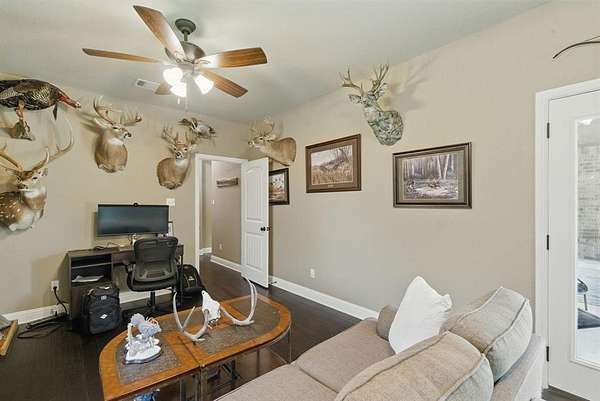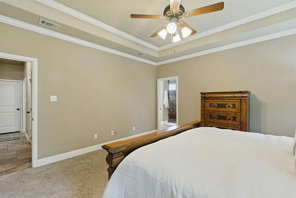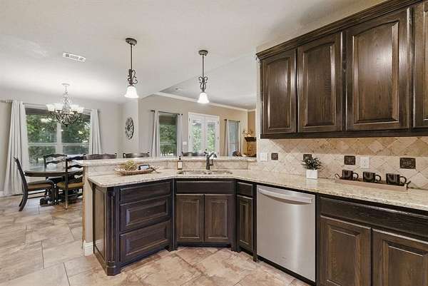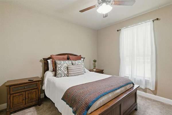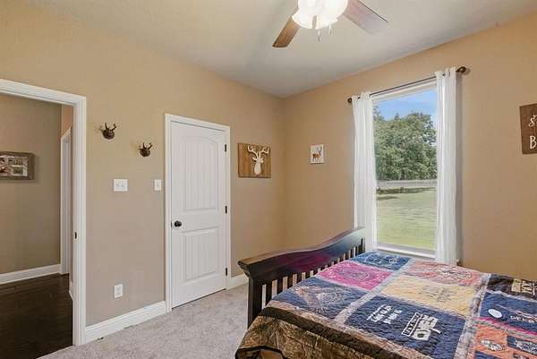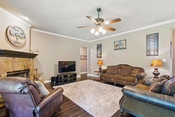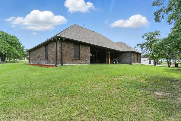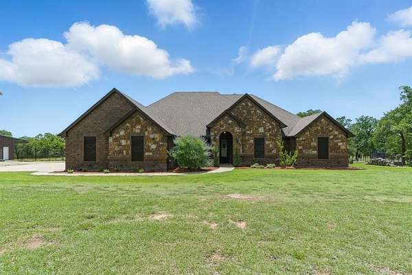 Opportunity awaits for your own private, country retreat in the highly desired community of Peaster. Nestled on over 6 acres, this sprawling brick and stone traditional home offers a rare combination of size and tranquility. Drive into the private driveway to the custom built, almost 2600 square feet residence with its very own stock pond. Step inside the generous foyer of this one level home and you will be greeted by immaculate engineered wood floors and a stone, gas burning, fireplace, creating a warm and inviting focal point for gatherings. The open and airy design, seamlessly connects the living, dining and kitchen areas. The dining room features large windows with views of the natural landscape. The spacious kitchen offers ample granite counter space, a breakfast bar, a gas range, a walk-in pantry and durable tile flooring. The large master suite situated conveniently to the garage entry, offers an extra large bathroom with a walk through shower, soaking bathtub, double sinks and linen storage. The guest bedrooms offer spacious closets and are situated for you guest to have privacy. A second family room has limitless possibilities for additional entertaining space and has french doors leading to the large covered back porch. A half bath and separate laundry room complete this thoughtful layout. Outside the home is the large workshop with an attached carport, offering plenty of space for hobbies, lawn tools or fishing equipment for that stock pond! The expansive acreage remains in its natural stare, providing endless possibilities to add a garden or swimming pool. Additional amenities include a loafing shed, storage building, sprinkler system, gated entrance AND NO HOA all on this AG EXEMPT property! This is a true gem waiting to be discovered!