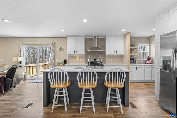A thoughtfully designed home offering space, comfort, and peaceful surroundings just a short drive from Charlottesville. No HOA or water bill Situated on over 2 acres, this nearly new home offers 4 bedrooms, 2 full bathrooms, and over 1790 square feet of well-planned living space. The open floor plan creates an easy flow between the kitchen, dining, and living areas—perfect for both everyday living and entertaining. The kitchen features modern cabinetry, stainless steel appliances, a large island, and ample counter space, opening into a bright and inviting living area filled with natural light. The primary suite provides a relaxing retreat with a spacious layout and private bath, while three additional bedrooms offer flexibility for guests, family, or a home office. Step outside and enjoy the privacy of over two acres backing to trees, offering plenty of room to relax, garden, entertain, or simply enjoy the quiet setting. Additional highlights include energy-efficient construction, modern finishes, and high-speed Firefly fiber internet availability.