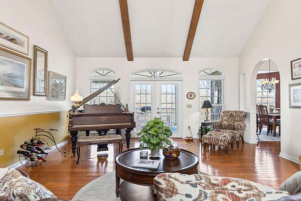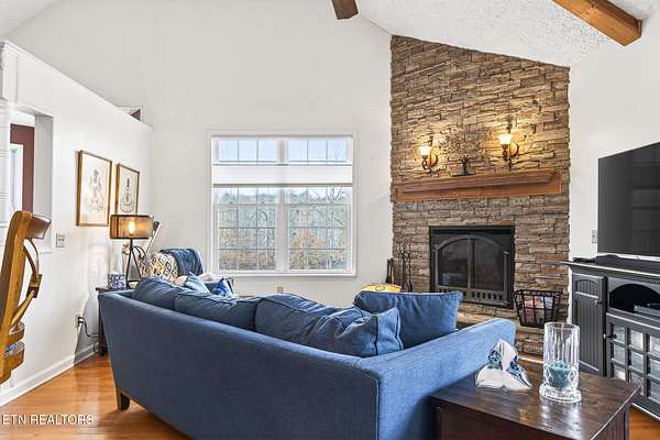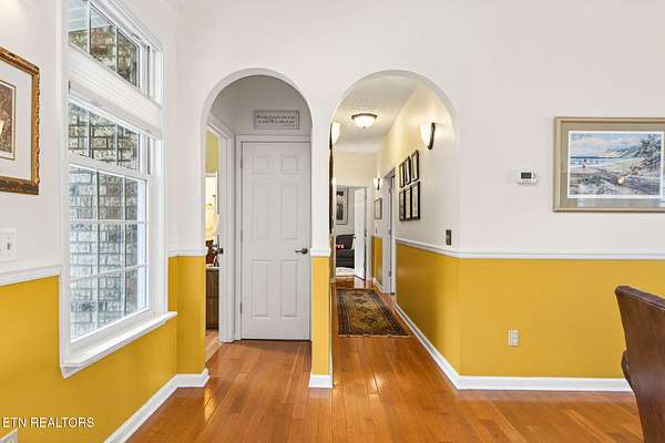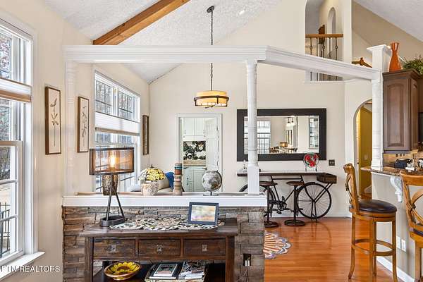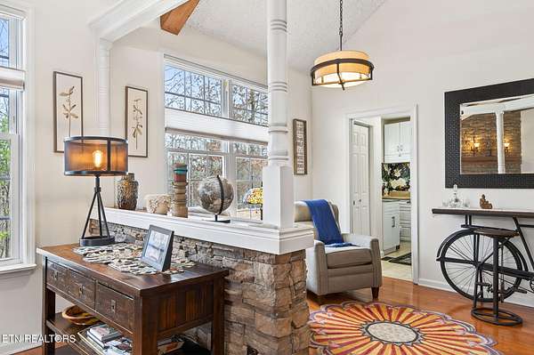 Nestled in a quiet woodland setting on a private lake, this beautifully updated home offers peaceful lakeside living with thoughtful upgrades throughout. Fresh paint, updated lighting, custom shades, and real hardwood floors create a warm and refined feel from the moment you step inside.