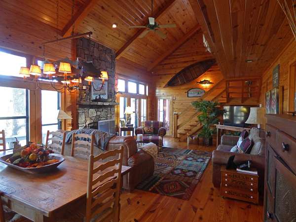 Est $2,028/moRustic Wood Cabin inside; this beautiful home has 4 bedrooms, 2 & 1/2 baths, utility room, gas log fireplace, living room and kitchen. Screened-in porch perfect for taking quiet naps while the Spring River rolls along below. There's also a large back deck that overlooks the gorgeous Spring River and surrounding area. All this is sitting on 2.3 +/- acres providing enough room for a your shop/garage. The cabin comes furnished with all the appliances and most of the furnishings so you can move right in and enjoy the "River Life" with some of the best trout fishing you will find. Or just get in a canoe, raft, or kayak and float down the great Spring River.