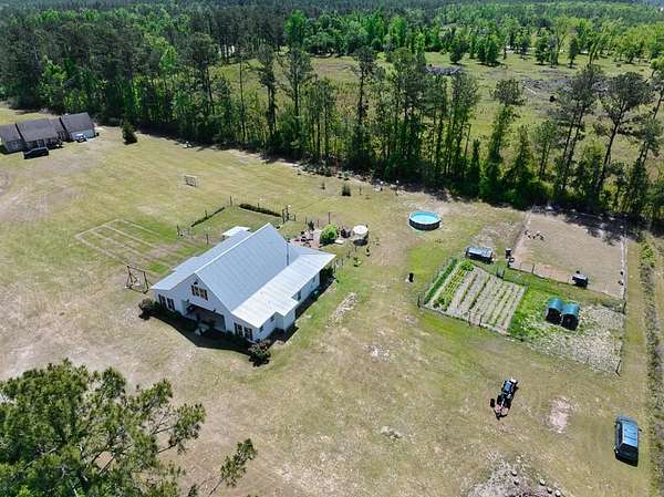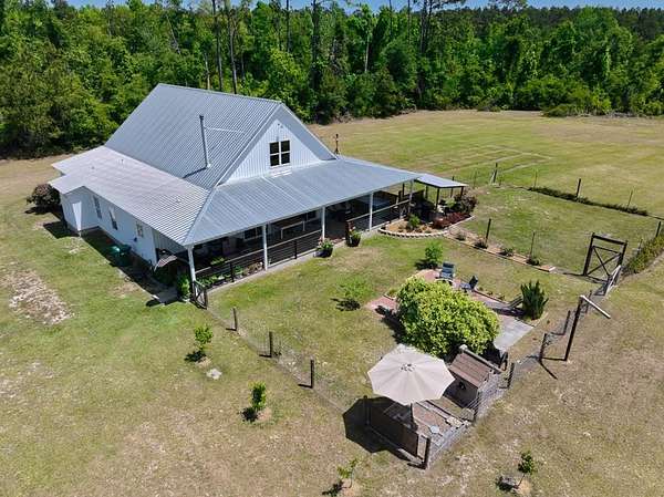 Beautiful 4-Bedroom, 3-Bath Farmhouse on 5 Private Acres! Step inside this charming farmhouse and discover a spacious, inviting open floor plan perfect for comfortable living and entertaining. The heart of the home is the well-appointed kitchen, featuring an oversized island with granite countertops, stainless steel appliances, and a large farmhouse sink. Two walk-in pantries provide excellent storage—one is currently being used as a cozy library! The generous living and dining areas flow seamlessly together and are anchored by a fireplace that can efficiently heat the entire home. The primary suite offers a true retreat with two walk-in closets, a luxurious clawfoot tub, a tiled shower, and dual vanities. Guest bedrooms are thoughtfully positioned away from the primary suite, with bathrooms conveniently located near all sleeping areas. Massive bonus room upstairs that can be used as a second living room, or even a 5th Bedroom - as it is equipped with built-in Bunk Beds! Outside, enjoy the massive covered back porch overlooking your private, tree-lined backyard with no neighbors behind you. Lowndes County Schools! Country Living but still conveniently located close to town! The property includes fenced areas ideal for goats or chickens, plus a wonderful selection of established fruit trees and plants—including peach, blueberry, fig, blackberry, kumquat, mulberry, olive, and elderberry—complete with irrigation for easy maintenance. This rare country gem won't last long! Call today to schedule your private showing.