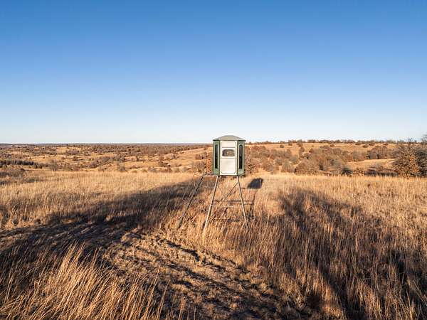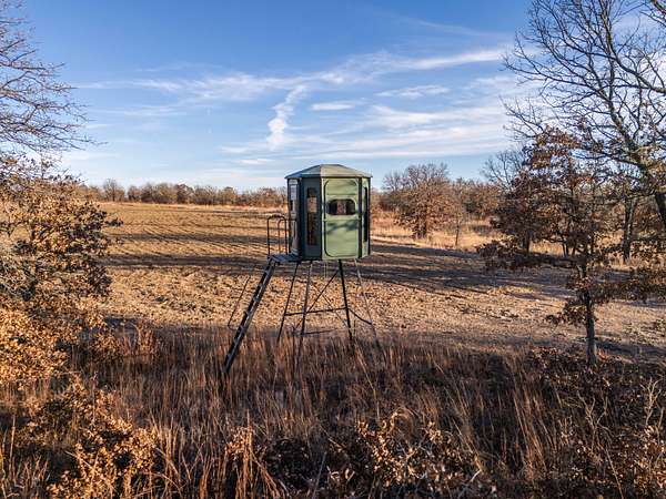 Located in hunting unit 12, it offers secluded hunting with established food plots, multiple stand locations, and strategically placed blinds. The combination of water, cover, and terrain supports an impressive population of wildlife, including whitetail deer, turkey, waterfowl, upland birds, and small game. Whether you're seeking a premier hunting property, a working ranch, or a private recreational escape with income potential, this tract delivers on all fronts in a location that remains easily accessible to major cities.