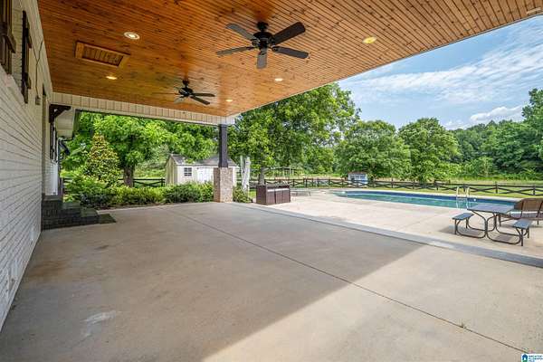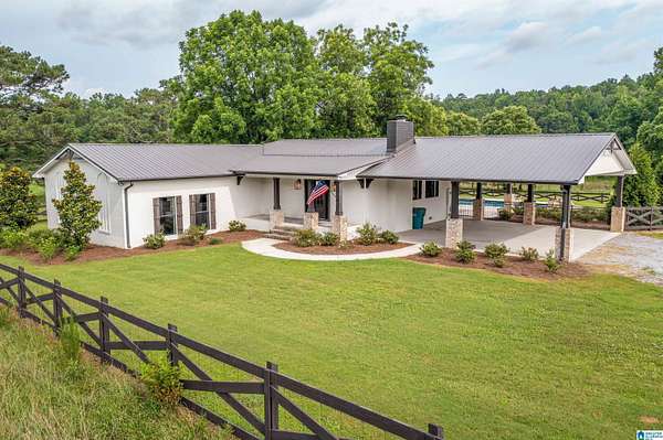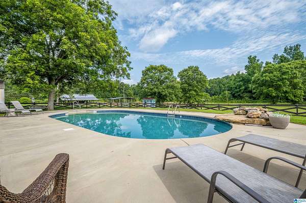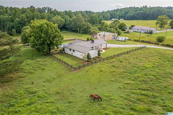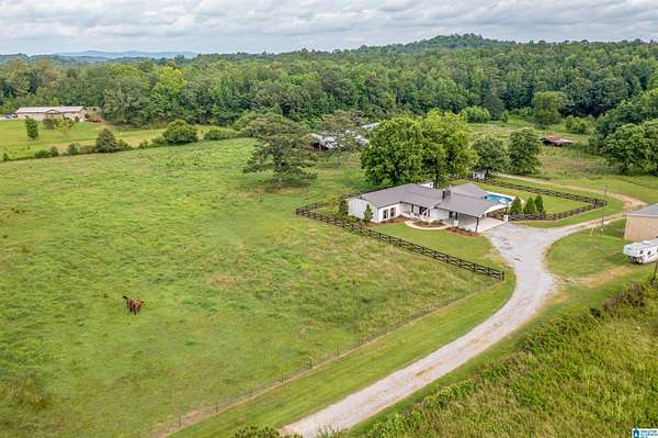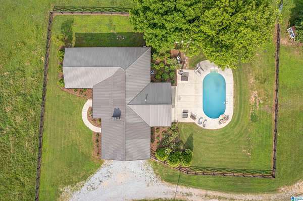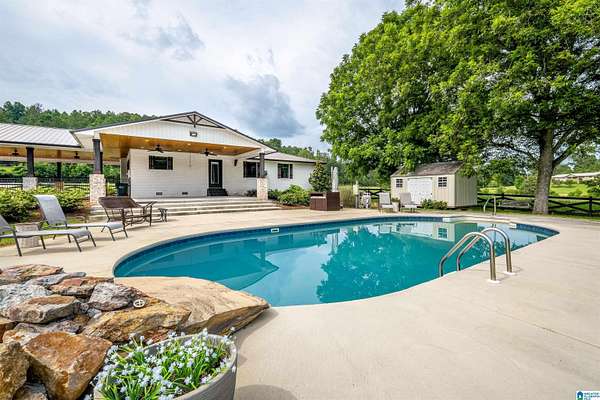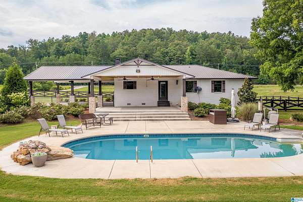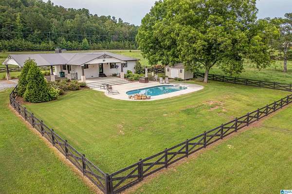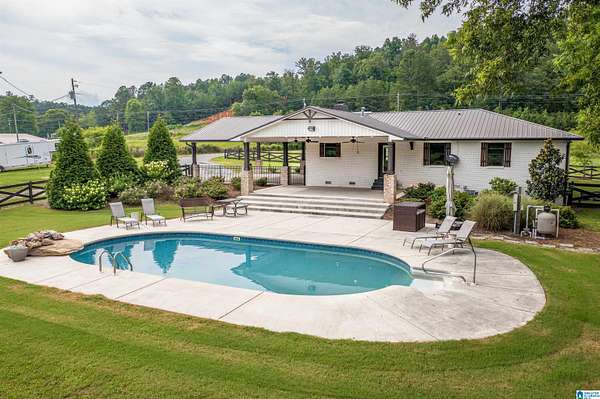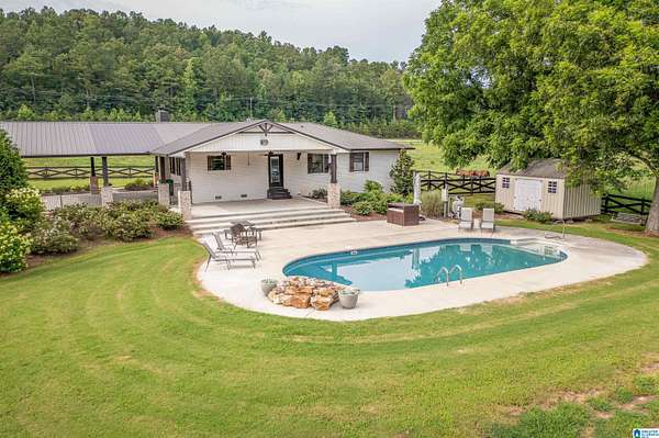 Looking for a place to call home for you and your livestock? This fully remodeled 4 bed 2bath home sits on 15 beautiful acres, complete with everything you need for animals, storage, hobbies, and more. Approximately 2,100 square feet of thoughtfully designed living space, including a unique 4th bedroom converted from a 2-car garage--featuring 4 custom-built full-size bunk beds and two walk-in closets. Renovated in 2021 with new LVP flooring, custom cabinetry, updated bathrooms and kitchen, new windows, and elegant landscaping. Relax under the large covered back patio or enjoy summer days in the 18x32 oval in-ground saltwater pool. A 2 car covered carport adds convenience and extra space for entertaining! The Barns & Shop: 60x40 pole barn with steel pipe livestock pens/gates, power, and water o 40x80 pole barn for large equipment or hay storage o 30x40 steel shop with a finished office, mini-split HVAC, three-phase power, and water o 24x18 small pole barn.