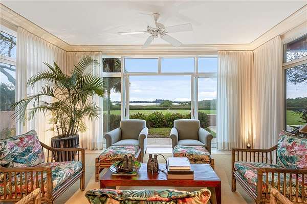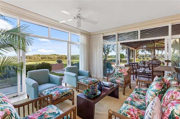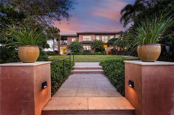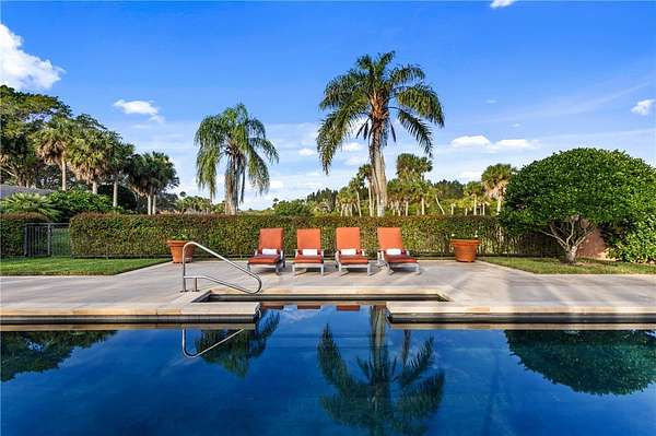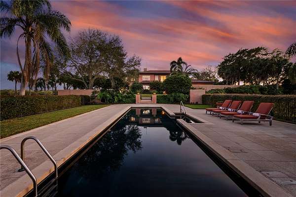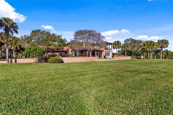 Old Florida ambience with Mizner-style home situated on 42.27+/- glorious acres bordered by 1600' of intracoastal frontage, 300' dock, 3.25+/- acre lake, spectacular sunrises, sunsets, and abundant wildlife native to the environ. Unobstructed vistas from the 6905 sq ft 4BD/4.5BA residence complete with whole house 60 kw generator, expansive pool, 3 car garage. 2nd level encompasses a VIP water-view ensuite with French doors to a covered balcony. Wraparound water views from Loggia. Additional 3/2 guest cottage and 4500 sq ft workshop ideal for the car collector. Adjacent 7 acres zoned AG available