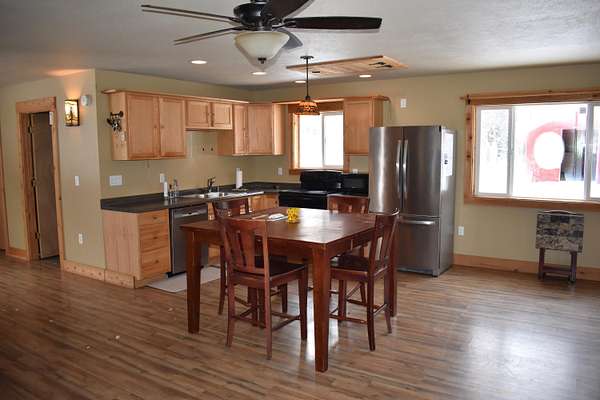 2014 custom built home on 5 acres with 3 bedrooms and 2 bathrooms. Located on a quiet road in the heart of recreation country. The property abuts about 50,000 acres of Federal Land to the East. You can walk to the Baldwin River to trout fish. The 26x36 insulated and heated pole barn with loft storage and a shed will give you plenty of space for a shop or toys. Large fenced in area for your dog or livestock. 12x36 covered porch. Mini Split for AC on hot Summer days and for Winter warmth there is a wood stove plus a propane wall furnace. There is a handy Outhouse that ties into the septic system. This is a great year round home or Up North Retreat.