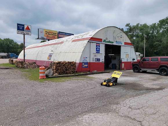Est $2,180/moPresently this is a garage for large truck repair. Approx 50,000 sqft lot with over 500 ft of state road frontage. Lot includes the Quonset Hut building with attached office. Does not include the buildings next to the railroad. SEVERAL Lots combined on 2 parcel numbers. Zoned RES Lot and Garage. 2 entrances to the highway. All lot sizes are approx. Would be a great location for a retail store.