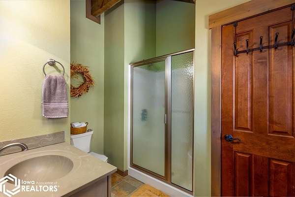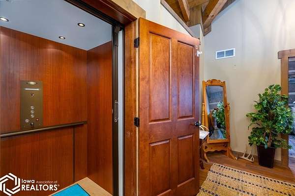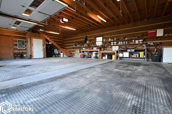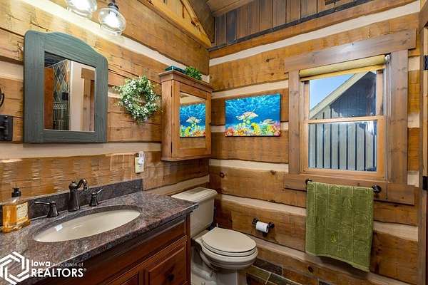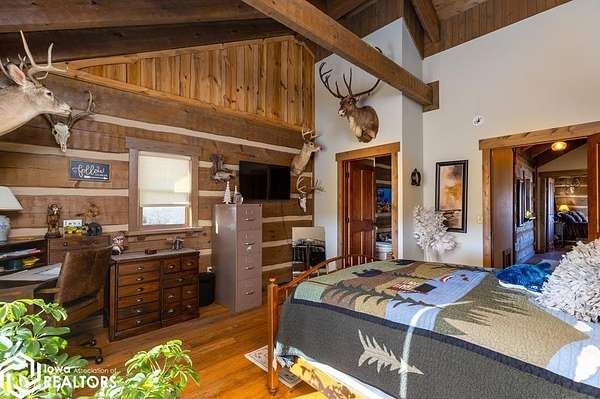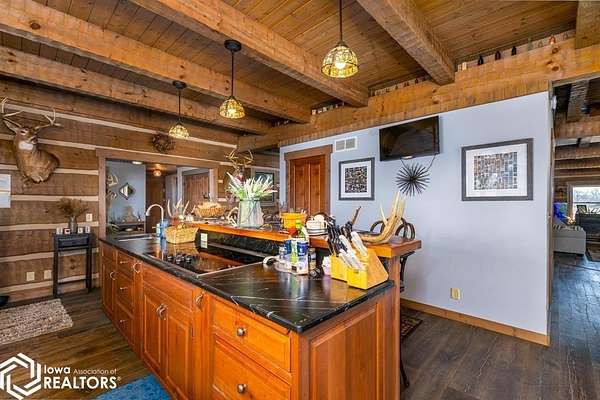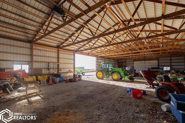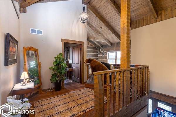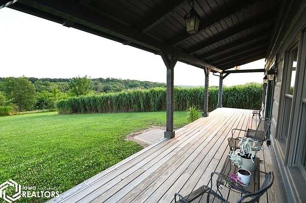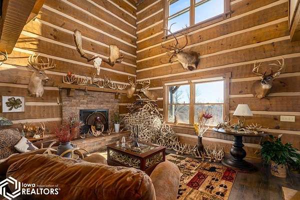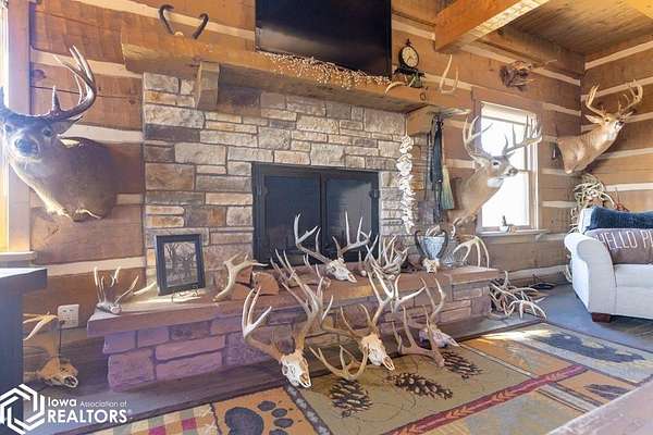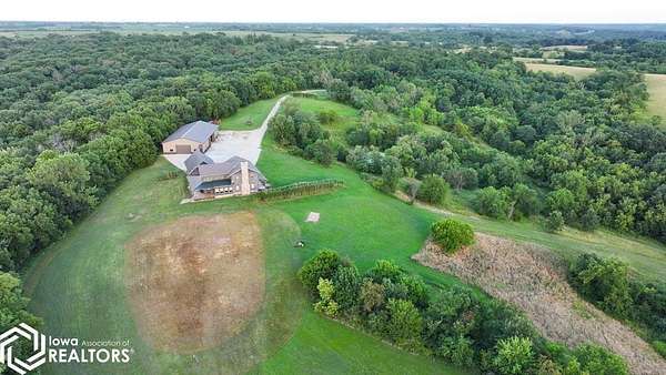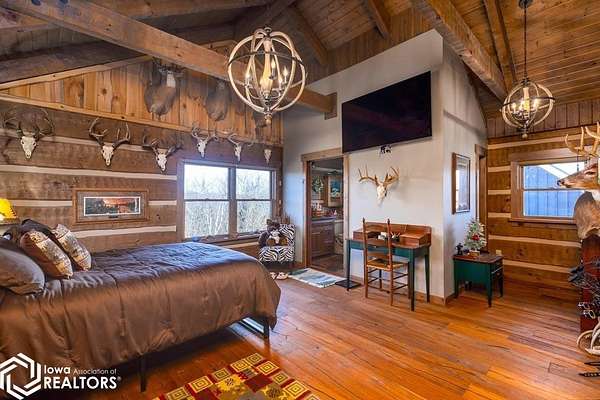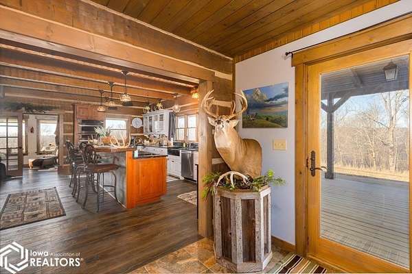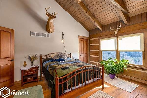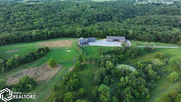 Escape the hustle and embrace the tranquility of country living with this breathtaking, approx. 18 +/- acre (additional land available) retreat just minutes from highway 14 and Chariton, Iowa, amenities. Tucked away in a private, scenic setting, this colonial square log home crafted by Heartstone Inc. Builder, offers the perfect blend of rustic charm and modern comfort. The structure improvements on the property are spectacular. A colonial wood/timber custom home spanning 3,070 finished SQFT showcases a 3-bedroom and 3 1/2 bath layout. A custom kitchen with soapstone counter tops with great views of the yard and wildlife. Beautiful interior open wood concept with vaulted ceilings throughout the home. The main floor offers a kitchen, sunroom, two living room areas with fireplaces, and a dining room. The second floor offers 3 bedrooms, with each room having its own full bathroom. Two porches that offer very peaceful and scenic views, it's common to have deer and turkey in the backyard on a daily basis. Enjoy energy-efficient living with a geothermal heating and cooling system. The home offers an attached three-car garage with loft storage. The basement was designed with 9-foot ceilings, presenting the new owner the opportunity to finish based on their vision.
