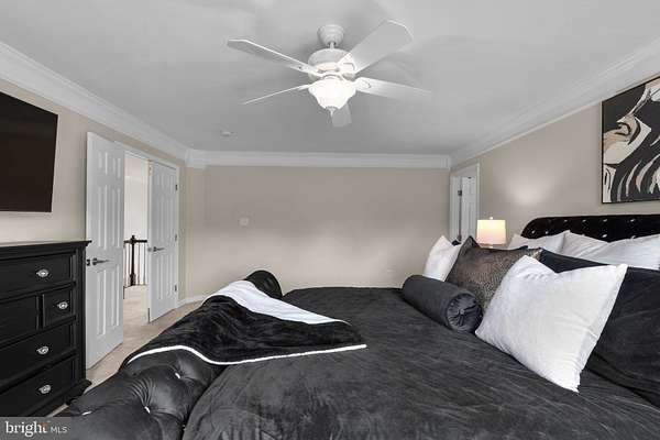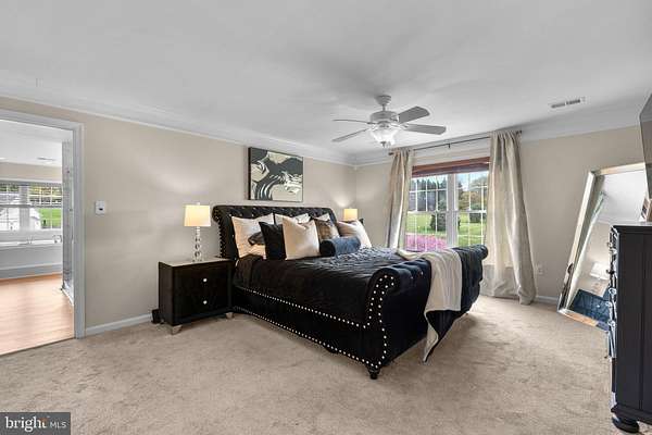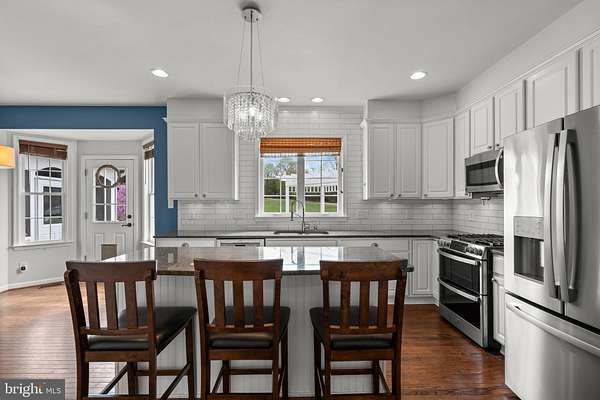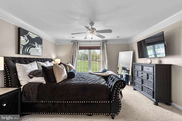 Income Producing home that has No HOA! Nestled at the end of a quiet cul-de-sac on 2+ acres, this distinguished 5-bedroom (including a bonus den in basement), 4.5-bath colonial blends timeless elegance with modern, turn-key livability. A long, private driveway leads to an inviting two-story foyer, opening to exquisitely crafted interiors with crown molding throughout. From the custom batten accent wall in the office to a magazine-worthy dining room with wainscoting, every detail reflects quality and design. The chef's kitchen impresses with stainless steel appliances, a gas range, pot filler, double-oven range, and a walk-in pantry-flowing effortlessly into a cozy family room with custom built-ins and a gas stone fireplace. Just off the main level, enjoy a renovated screened-in porch with ceiling fan and a spacious deck designed for indoor-outdoor entertaining and relaxed dining. Upstairs, the luxurious primary suite offers a spa-like bath with soaking tub, rainfall shower, towel warmer, and an oversized custom walk-in closet that feels like a private boutique. The light-filled, finished lower level features a separate entry, full bath, theatre area, and a versatile bonus room-ideal for a gym, playroom, man cave, or additional storage-plus a newly renovated bar with quartz countertops, sink, and dishwasher. Outside, discover a built-in storage shed, a rear patio perfect for evenings by a firepit, and a beautifully maintained yard framed by a tranquil wooded backdrop. The home is also equipped with solar electricity, with panels discreetly placed at the rear to preserve the home's curb appeal. The oversized two-car garage, complete with built-in storage and a wall-mounted vacuum, is a rare find for hobbyists and DIY enthusiasts. With access to a nearby neighborhood pool and pristine move-in-ready condition, this exceptional property offers country estate-style living at its finest.
