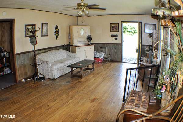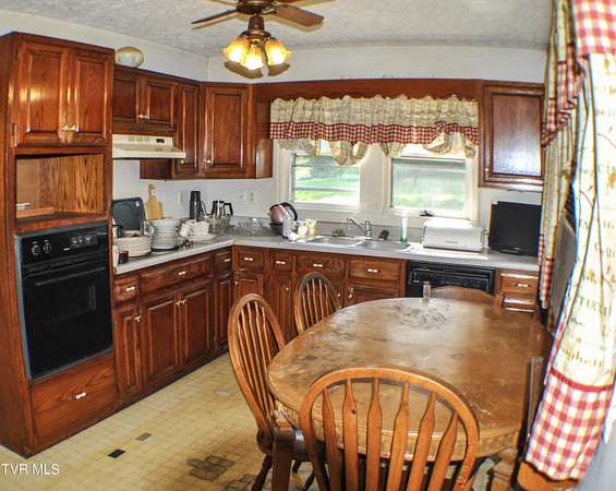 This land is gorgeous. It is 4 acres of almost level beauty. It would be perfect for another house or two for your family members. It is a quiet and peaceful country setting just minutes from downtown Jonesborough. The house needs updating. It has a wood stove, wall heaters, and window A/C units. Remodel it and it will be a beautiful little farmhouse. There is an old cabinet shop on the property. It is not in good shape and could be torn down. There is still some machinery inside which the family would be willing to sell for scrap or other use. Contact LA for more information on this. The beautiful kitchen cabinets were custom built by family. There is a living room with picture window and view. One of the bedrooms has a picture window also. There is a formal dining room and a bonus room in the back. Most of the floors are exposed hardwood. The floors under the carpet are also hardwood. Kitchen and bath have vinyl floors. There is a shed behind the house. We are not sure of its sturdiness, so do not enter. The land is flat in front and has plenty of parking space. Dishwasher, wall oven, microwave and stove top are in working condition. There is a fenced dog lot in back. The land speaks for itself. It lays beautifully and has great views of the surrounding mountain area. With a little fixing up, it could be lovely and comfortable. Buyer/Buyer's agent to verify all information.