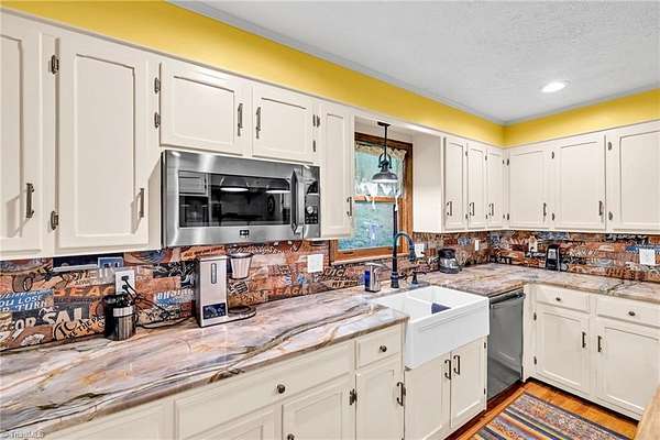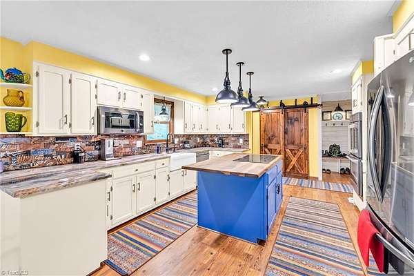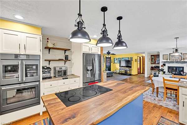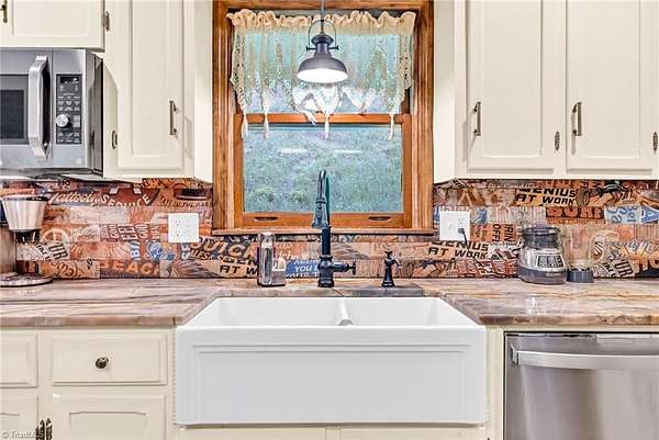 This beautifully updated brick home sits on approximately 3 acres, ideal for a mini farm or commercial use, with an additional 0.697-acre commercial lot included. Located off a state-maintained paved road with over 360 feet of road frontage, the property offers excellent access while ensuring privacy. The charming arched entryway leads to an open-concept layout featuring a spacious great room with shiplap accent walls and a whitewashed fireplace. The remodeled kitchen boasts walnut cabinetry, granite counters, stainless steel appliances, and a farmhouse sink. The main level has three bedrooms, including a primary suite with a luxurious bath. Hardwood flooring runs throughout, and the partially finished basement offers an additional 1,700+ sq ft of potential living space. Just minutes from area amenities and downtown West Jefferson, this property combines convenience, style, and homestead potential. Additional acreage is also available for purchase.