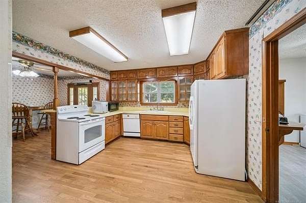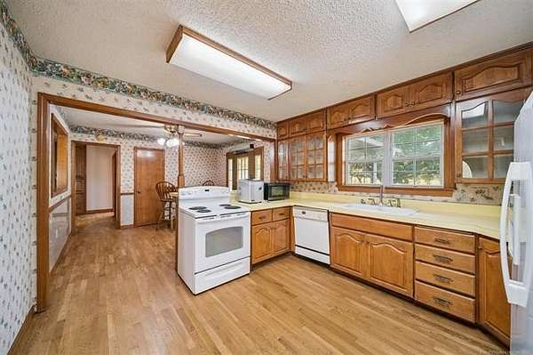 This CHARMING and fully handicap-accessible home is nestled on nearly 2 acres of peaceful, park-like land. This well-maintained property features gorgeous hardwood floors throughout the spacious living room, perfect for relaxing or entertaining. The kitchen makes cooking and doing dishes enjoyable with the view of the backyard. The extra large utility room could possibly serve as extra living or office. Enjoy the serene outdoor setting with mature trees and plenty of open space. The LARGE shop provides room for parking, hobbies, storage, or projects. This property combines country tranquility with everyday convenience ~ ready for your personal touches, updates, and to make it your own.