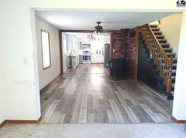 Enjoy the peace of country living on 3 acres with this spacious 5-bedroom, 3-bath home located just outside Galva and within the highly regarded Moundridge School District. This home features an open-concept main level designed for comfortable everyday living, along with a finished full basement that includes a bonus room-perfect for additional living space, a home office, or recreation area. With multiple living areas and generous square footage throughout, there's plenty of room for everyone to spread out and enjoy. A large mudroom with its own bathroom and direct basement access adds convenience and functionality, while the attached 2-car garage provides additional storage and ease of access. The property also includes eco-friendly solar panels to help reduce utility costs and operates on well water, offering both sustainability and self-sufficiency. If you're looking for space, privacy, and modern comforts with the benefits of country living, this property is a must-see.
