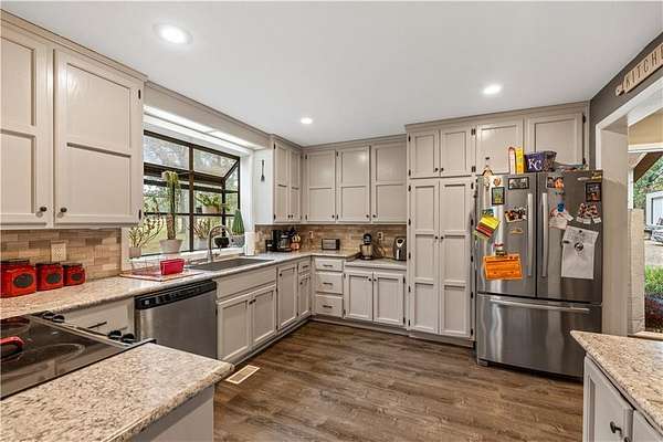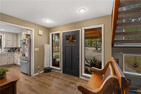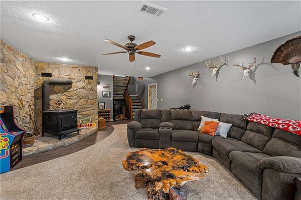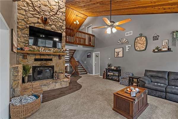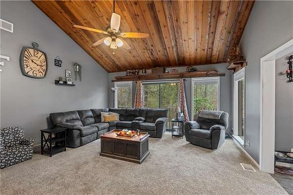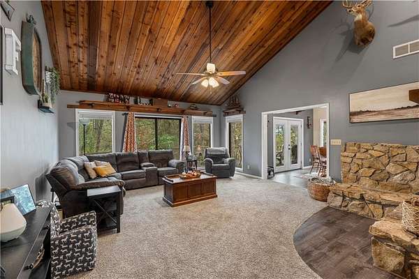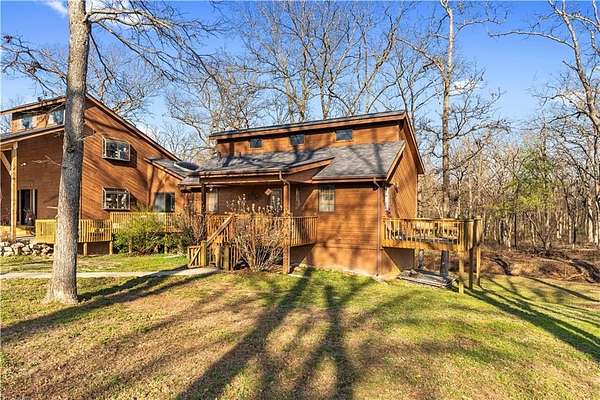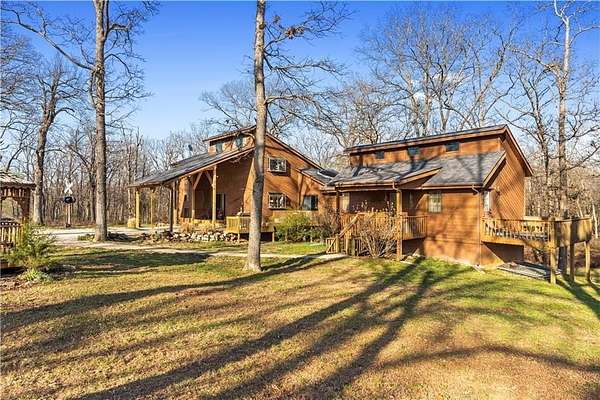 Escape the ordinary and discover a truly one-of-a-kind retreat with this incredible 83 m/l acre property! Whether you're an avid hunter, an equestrian, or someone dreaming of a self-sufficient lifestyle surrounded by nature, this unique offering has something for everyone. The land is predominantly timber, providing exceptional cover for wildlife and great opportunities for deer and turkey hunting. A smaller portion of tillable ground offers flexibility for crops or grazing. For the animal lover, a fenced area is already set up for horses. You'll also find four ponds scattered across the property, including one that is stocked and ready for fishing! The home is as unique as the ground it sits on, the cedar-sided home offers incredible flexibility. It features multiple living areas, both boasting walk-out basements. The North portion of the home has been meticulously updated from top to bottom! Enjoy a newer roof, upgraded PEX plumbing, fresh interior paint, and new floor coverings. The two bathrooms in this section have been completely remodeled. Cozy up on chilly nights by the rock accented fireplace with a wood-burning insert on the main level, or the additional wood stove on the lower level. No dream acreage is complete without an outstanding workshop! The 40 x 60 shop, built in 2019, is ready for anything. It features concrete floors, two 14-foot overhead doors, and two walk-through doors. For ultimate convenience, the shop is already plumbed and stubbed for a future bathroom and includes floor drains. This property is a rare find, seamlessly blending premium acreage, updated living space, and a fantastic shop.