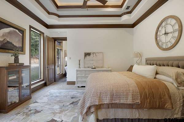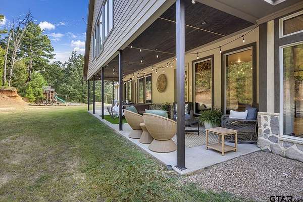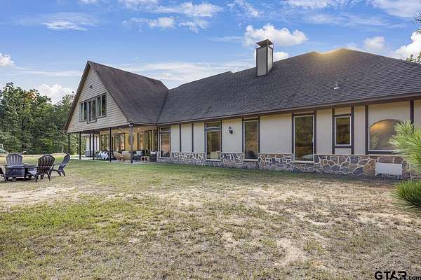 Discover country living at its finest in your very own Castle in the Woods! Tucked away in a peaceful country setting on 40 plus acres this spectacular 5 bedroom 3.5 bath home blends wide-open views and privacy with all the conveniences of modern living. From the moment you arrive, the stately exterior and welcoming entry set the tone for the elegance found throughout. Inside, the home opens to soaring 16 ft ceilings, spacious living areas, exposed beams, stone fireplace and custom crafted wood. Walls of windows flood the home with natural light that create a warm and inviting atmosphere. The open-concept design is perfect for both everyday comfort and entertaining, with the living room flowing seamlessly into a chef's kitchen featuring custom cabinetry with concrete counters, an oversized island, double ovens, gas stovetop and plenty of storage. The dining area allows for memorable gatherings and a casual place to enjoy morning coffee or dinner with family and friends. The primary suite is a private retreat, complete with a spa-like bath boasting separate vanities, a soaking tub, and a separate custom tile walk-in shower. Some of the many standout features of this home are the additional family room, home office, exercise room, game room and a media room, offering the perfect setting for movie nights. Outdoors you'll find a spacious covered patio where you can enjoy country sunsets and just relax surrounded by the sights and sounds of nature. If you've been searching for a luxury retreat in the country that is as functional as it is beautiful this is the one to see!