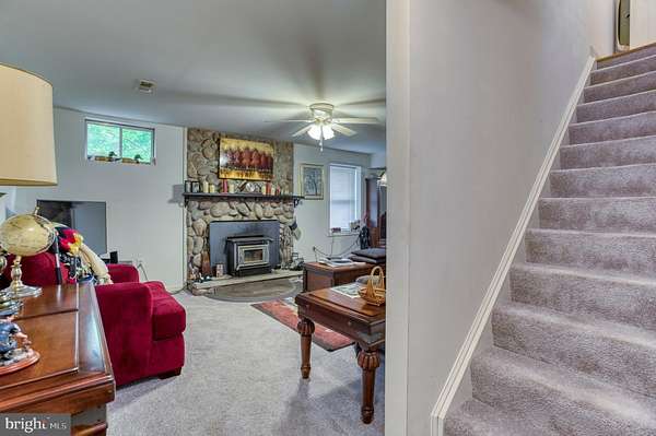 - Carpet, Ceiling Fan(s), Combination Kitchen/Dining, Country Kitchen, Entry Level Bedroom, Pantry, Pellet Stove, Primary Bath(s), Traditional Floor Plan, Tub Shower Bathroom, Walk-In Closet(s), Window Treatments, Wood Floors, Wood Stove