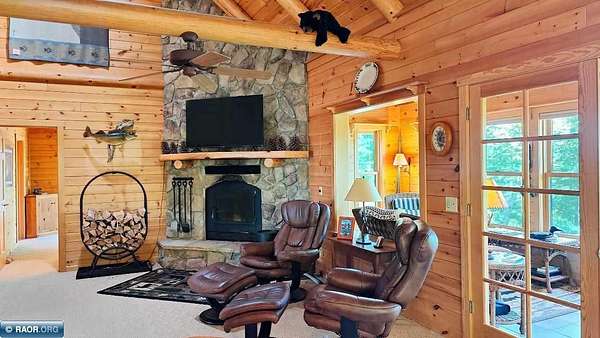 This exceptionally well maintained Lake Vermilion home sports both location and many highly desirable features. This authentic Greatwood home sits on a very private 2.61 acre lake lot with 300' of lake frontage and has over 4000 sq.ft. of finished interior. The main floor features open kitchen/living area with a master bedroom/bath/closet and front sunroom and several decks for relaxation, entertaining and family time. Fully finished basement includes two spacious bedrooms, bathroom, large rec room and walkout basement with lots of storage space for clothes and outdoor gear. The loft can serve as an additional bedroom/office/rec area. Add to this 3 docks, boathouse with fish cleaning addition, insulated garage with bonus room above and a pole building. Home sold furnished with boat and UTV. This home may have everything you are looking for to start enjoying Lake Vermilion Life.