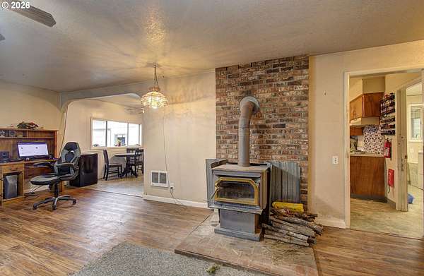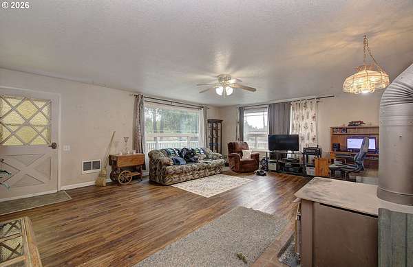 Set on just over five acres, this 4-bedroom, 2-bath, 2,279-sq-ft farmhouse offers a layout suited for anyone wanting space to farm or simply spread out. The property is fully fenced and cross-fenced, and the barn includes a loafing shed, hay storage, and a tack room-providing practical options for animals or equipment.Inside, the home carries a warm country character, featuring a spacious kitchen with an eating bar that opens to the dining area, along with a woodstove for added coziness. Recent cosmetic updates offer a fresh touch, while still leaving room for you to bring your creative vision and make the home truly your own.Outdoors, fruit trees add to the property's charm, and both the deck and the covered back porch provide inviting spaces to enjoy the surroundings. The yard is completely fenced, creating a secure area for smaller pets.