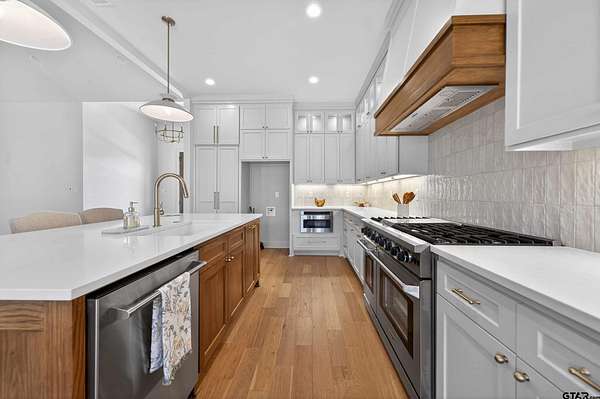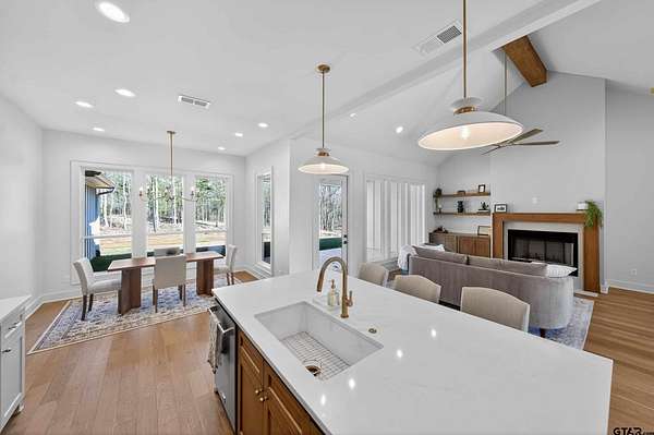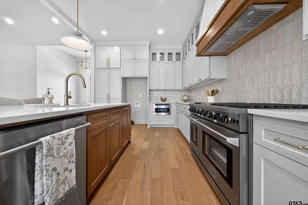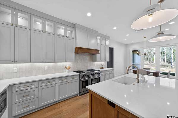 This stunning 5-bedroom, 3.5-bathroom brick home sits on over 6 acres of lush land in the highly desirable Lindale ISD. With a spacious open floor plan and luxurious finishes, this home offers the perfect blend of modern comfort and peaceful country living. The gourmet kitchen features a 48-inch gas range, sleek quartz countertops, and custom white oak cabinetry, creating an ideal environment for cooking and entertaining. Engineered hardwood floors flow throughout the home, while a cozy gas fireplace anchors the inviting living room. The expansive 6.26-acre lot offers endless potential for outdoor enjoyment--relaxing, gardening, hosting gatherings, or expanding the property to fit your needs. To help you make the most of the land, the seller is willing to offer a credit toward additional seeding/grass or toward extra concrete for additional parking or a potential shop, giving you the flexibility to tailor the property to your vision. Located within the top-rated Lindale ISD, this home ensures excellent educational opportunities for your family. If you're seeking a spacious, beautifully appointed home with privacy, style, and room to grow, this property is truly a must-see.
