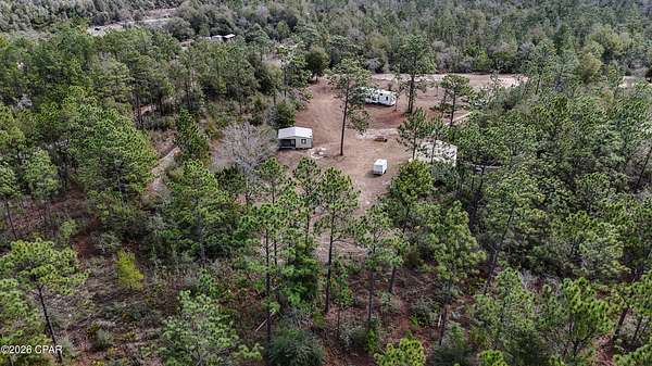 Beautiful and extremely private 5-acre property in Fountain, FL, featuring a perfect blend of cleared and wooded land. The property offers full-time RV hookups with electric, water, and sewer already in place, along with a tiny home/shed and a 20x30 enclosed pole barn for storage, equipment, or workshop use. Established deer feeders and trails make this an ideal hunting camp, while the seclusion and utilities also lend well to off-grid living. Plenty of room for ATVs, recreational use, or future improvements. A rare opportunity for those seeking privacy, outdoor recreation, and country living.