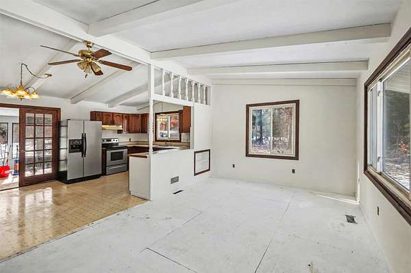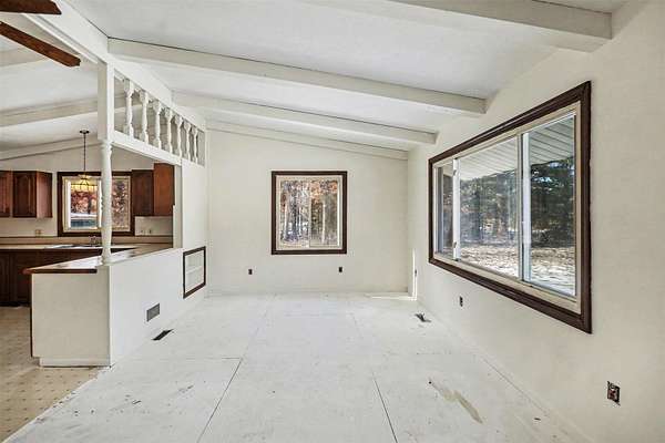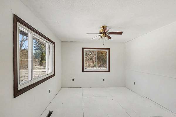 Private 10-Acre Ranch with Open Floor Plan & Sweat-Equity Potential! This 2 bed, 1 bath ranch-style home sits on a private 10-acre setting and offers an open floor plan and great bones-ready for your finishing touches. Much of the prep work has been started, with most flooring removed and walls and floors primed, providing a blank canvas for the next owner to make it their own. The home features a full, unfinished basement offering excellent storage or future bonus space. A large 3-season sun porch adds additional square footage, perfect for relaxing or entertaining. Appliances stay. An old wood boiler is present (condition unknown). Outside, enjoy the privacy this property offers along with a detached 2-stall garage and an attached carport, providing plenty of space for vehicles, equipment, or recreational toys. With acreage, privacy, and solid structure, this property is ideal for buyers looking to add value and create something special with a little vision and sweat equity.