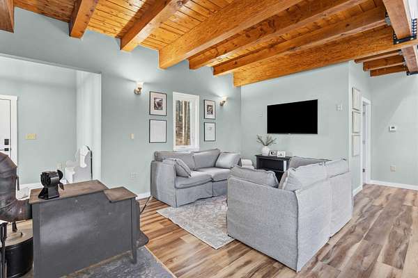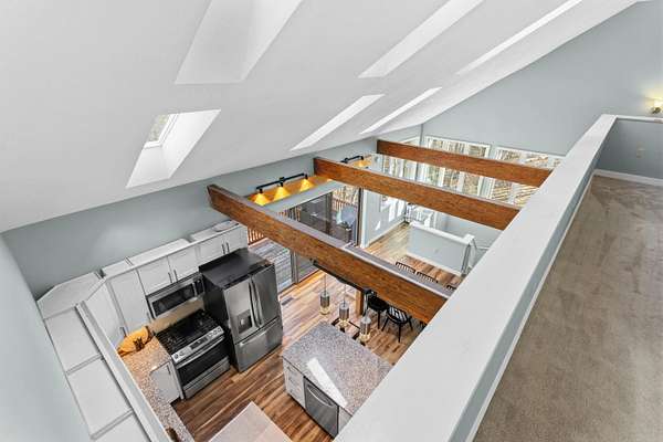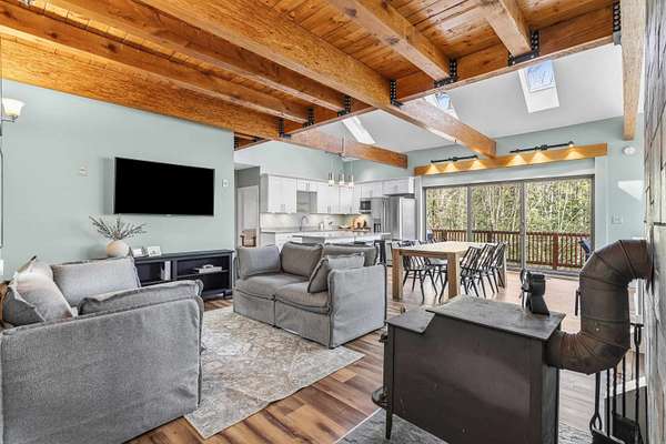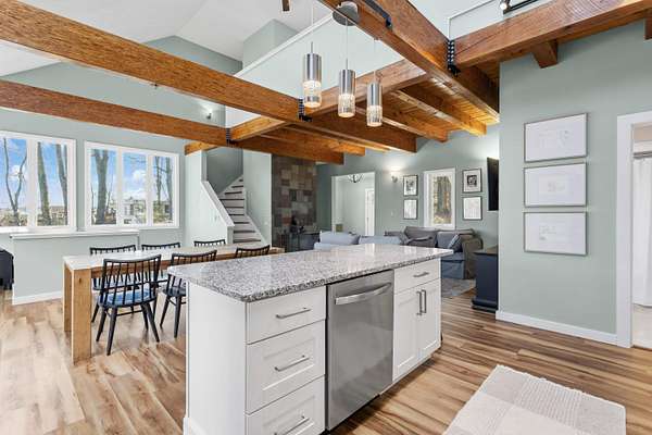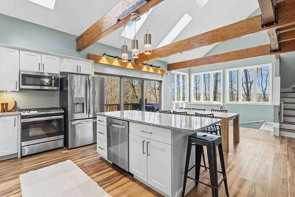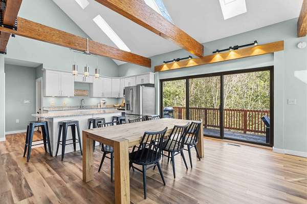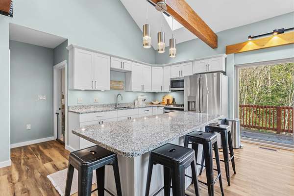 Stunning contemporary 3-bedroom, 2-bath home nestled on Buckley Rd. in the charming, historic town of Weare, NH. This move-in-ready residence has been thoughtfully updated with brand new vinyl siding (2017), a high-efficiency furnace, and central A/C (2019), plus new windows, flooring, new roof, a beautifully updated kitchen with granite countertops, and fresh paint, all completed in 2020. Enjoy the serene country setting on 3.9 picturesque acres, featuring a peaceful stream and plenty of room to explore. Step inside to find a welcoming entryway that opens to an expansive floor plan with soaring vaulted ceilings and attractive exposed beams. Sunlight pours into the home through three-panel glass sliders and skylights, creating a bright and inviting atmosphere. The main level includes two spacious bedrooms and a full bath, while the upstairs primary suite offers a cozy fireplace, a large bathroom, and a walk-in closet with convenient laundry. The partially finished, walkout daylight basement extends your living space with a generous family room, extra storage, a bonus room, and a mudroom/entry from the backyard—perfect for entertaining or hobbies. Unwind on the large back deck overlooking the tranquil stream, with an additional area below for a patio or storage. Not far from Lake Horace, Pats Peak Ski Area and the NH snowmobile corridor. Showings begin Saturday 3/28/26 Sale contingent upon Sellers finding suitable housing.