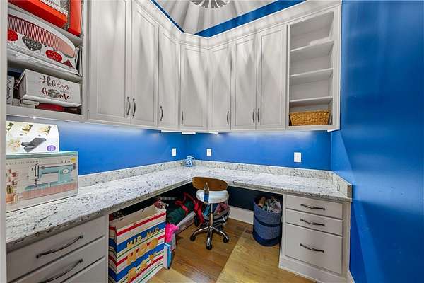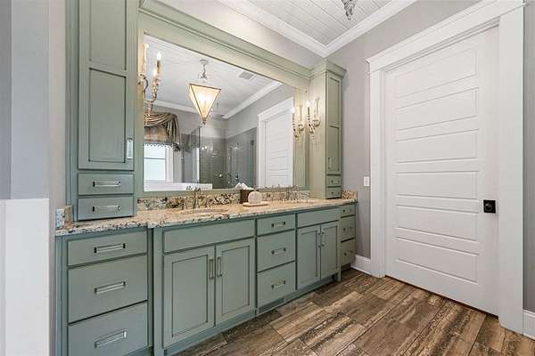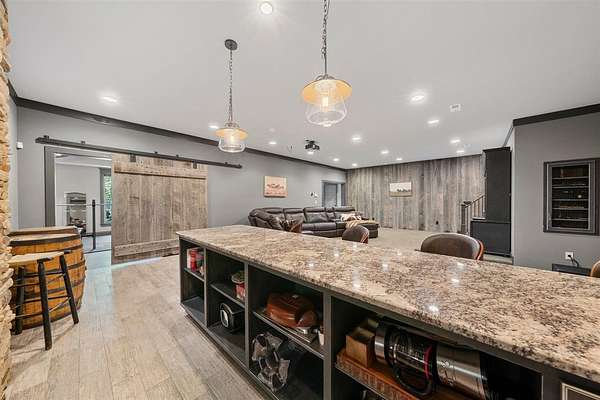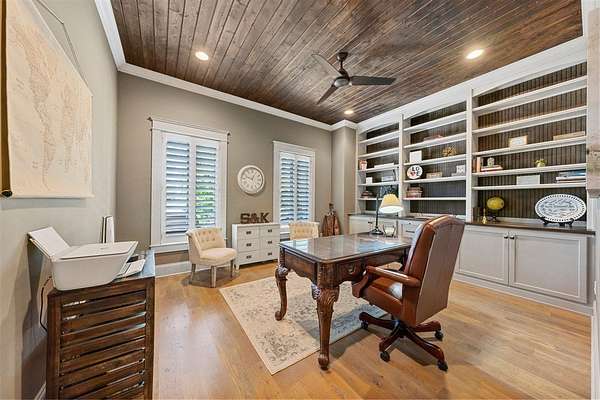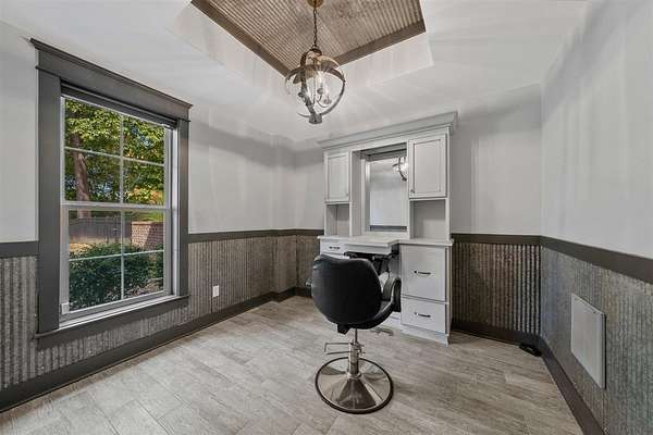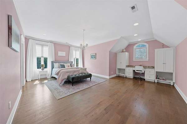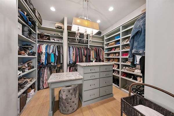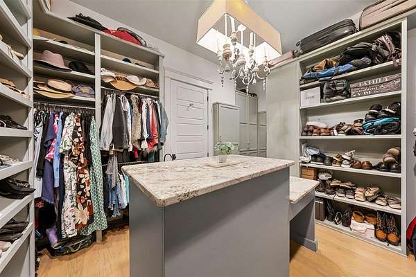 - Attic Storage, Bookshelves, Ceiling Fan(s), Chandeliers, Closet Light(s), Walk-In Closet(s), Wet Bar