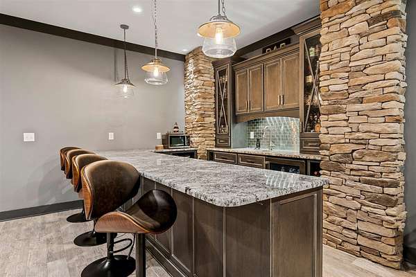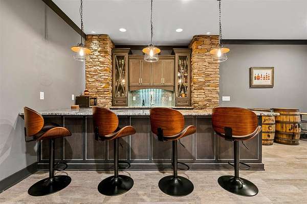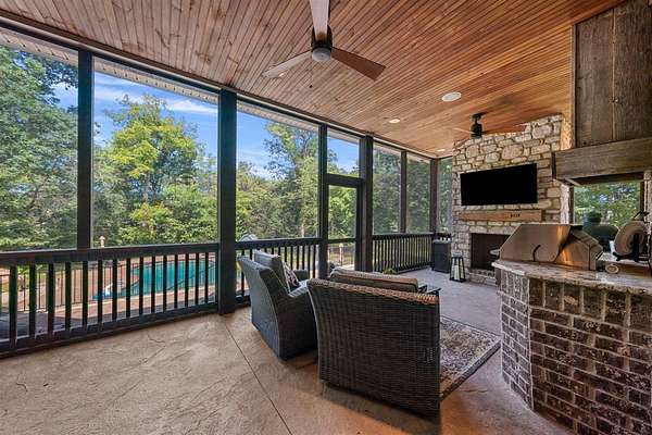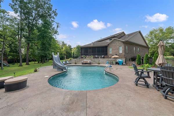 Welcome to your luxurious dream property that truly has it all! Perfectly positioned on the largest lot in the highly sought-after Summit subdivision, this executive home sits on over 2+ acres of fully fenced privacy in a quiet, tree-lined cul-de-sac. You'll enjoy walkable access upcoming Summit View Elementary School (opening 2027) and short drive to future Publix, shopping, dining, restaurants--all within an hour of Nashville, TN. Step into your own private backyard oasis, featuring a newly designed lagoon-style heated saltwater pool surrounded by mature landscaping, three levels of stamped concrete patios, and a remodeled screened-in porch complete with a cozy fireplace and built-in grilling Green Egg station. Whether it's relaxing mornings with coffee or lively summer gatherings, this outdoor space was made for entertaining in style. Home offers an expansive area of rustic elegance, with 5 spacious bedrooms, each with its own private full bathroom, plus a powder room on the main level. The open-concept floor plan includes a chef-inspired kitchen with granite countertops, backsplash, a copper farmhouse sink, and an adjoining great room and breakfast nook. Additional highlights include: formal living and dining room, two luxurious primary suites (main and upper level), bonus/playroom with walk-in attic storage, dedicated home office with custom built-in shelves and filing drawers, Large utility room with built-in cabinetry, Three gas fireplaces with updated gas logs, Fresh interior paint, plantation shutters, and updated lighting throughout. The finished walk-out basement offers endless lifestyle and entertaining options with a custom bar, home theater projection system with surround sound, home gym, salon/changing room, and space perfect for a storm shelter, wine cellar, or even a dedicated indoor sports area. The oversized 3-car garage includes a workbench and built-in cabinetry, providing ample storage for tools, equipment, and hobbies. Additional upgrades include full security system, Restoration Hardware finishes throughout, new outdoor paint, lighting, and gutter guards. Located in South Warren School District, this one-of-a-kind estate offers the perfect blend of luxury, space, privacy, and convenience. This is more than just a house--it's a legacy property.
