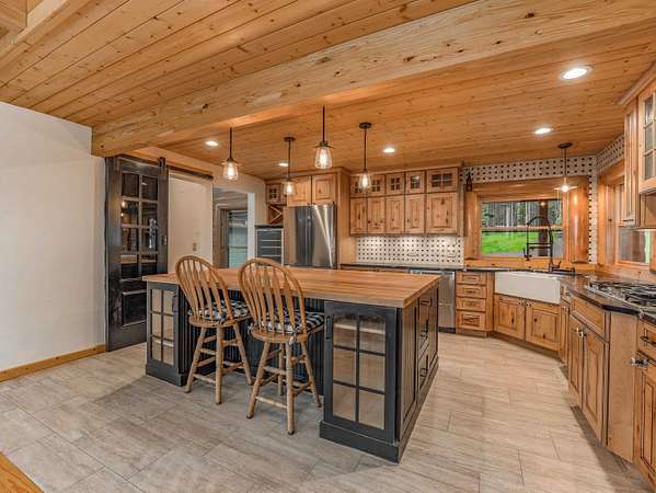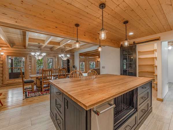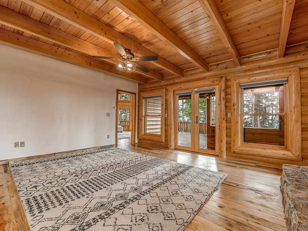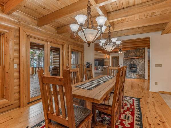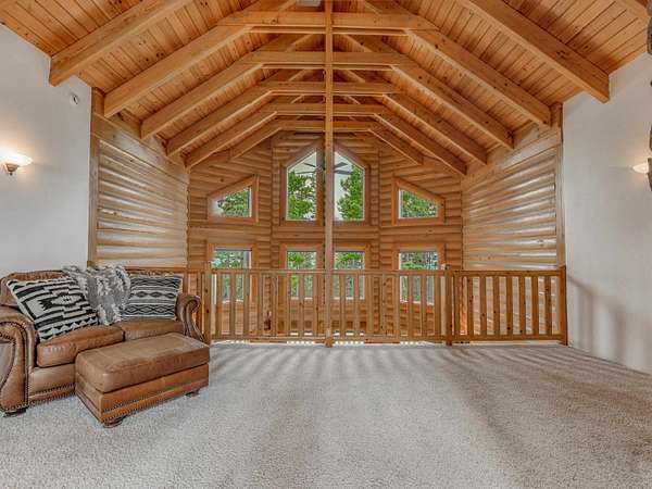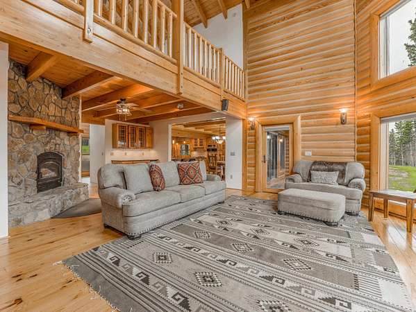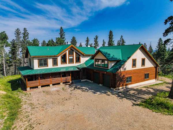 Welcome to your slice of serenity in the coveted Hidden community, just 20 minutes from Angel Fire Resort. Tucked into 11.55 acres of pristine forest, this stunning log home captures the essence of rustic elegance with the space and privacy to truly unwind. Inside, a soaring wall of windows floods the great room with natural light, highlighting rich wood floors, stacked log walls, and a cozy wood-burning fireplace. The layout is perfect for two, yet big enough for a large family. The recently renovated kitchen is a total showstopper-anchored by a large center island. The main-level primary suite is complete with its own fireplace, a luxurious walk-in cedar closet, and a fully remodeled bath featuring a stone-style soaking tub, dual vanities, and a walk-in shower. Upstairs, a spacious loft overlooks the great room-while two generous guest bedrooms and a full bath provide comfort and privacy for visitors. And for those needing a little extra space, the enormous bonus room above the garages is a blank canvas: bunk room, game room, creative studio, or apartment- plumbing infrastructure in place. With four garage bays, a workshop, and a large laundry/mudroom, you'll have room for all your gear and projects. Outside, the wraparound deck invites you to slow down and soak in the sounds of the forest. Hidden Lake is a gated, fire-wise community with a private stocked lake, on-site caretaker, and year-round peace of mind.