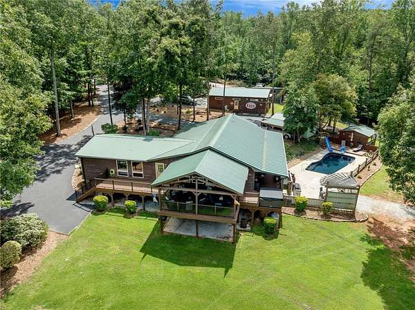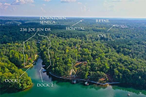 A once-in-a-lifetime opportunity on Lake Keowee! This 12.77-acre unrestricted property offers over 550 feet of pristine shoreline, just 1 mile from the hospital and minutes from town yet feels worlds away with peace, quiet, and no traffic noise. Owned by the same family for over 100 years, this property is steeped in history - the Baron family once owned the peninsula that later became South Oak Point, Berwick and South Cove Park. That property includes a 2,750 sqft home with 3 bedrooms and 3.5 baths, a separate bunkhouse for kids or guests, a private office with a full bath, a 700 sqft workshop, detached garage, covered equipment storage and a pool with a spacious patio perfect for outdoor gatherings. Many of the structures were built from trees harvested directly off the land, adding to the charm and story of this estate. For those seeking investment potential, the property could be subdivided into 4 waterfront lots each dockable. Already in place are 2 covered docks with cart paths for easy access. Currently divided into 4 tracts, a survey is available to reconfigure into 2 tracts if desired. Whether you're looking for a family compound, short-term rental property (VRBO,AirBnB friendly). or a rare unrestricted waterfront estate, this property delivers. They aren't making land like this on Lake Keowee anymore. Don't miss your chance to create a legacy property for generations to come! South Cove Park is less than 1 mile away and it offers picnic areas, playground, tennis & pickleball courts, and a park store. They also have boat ramps, a swimming beach and campsites. New (6 months) 7 person 72 jet hot tub with blue tooth speakers, ozone, waterfall, fountain jets and custom lights, to stay with property. The dock tags#2406 & #2603. TMS#s 208-00-01-114, 208-00-01-057, 208-00-01-003, 208-00-01-119 and 208-00-01-095 are included