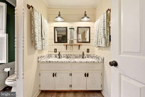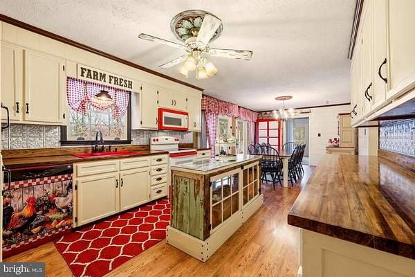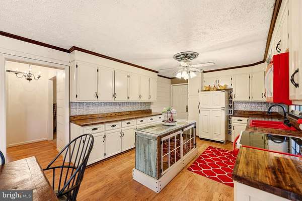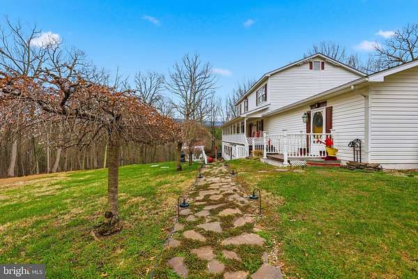 Welcome to 236 Kump Drive, where timeless charm meets peaceful living on over 6 acres! Discover this thoughtfully maintained four-bedroom, three-bathroom Colonial farmhouse set on a peaceful 6.7-acre lot that spans the Virginia and West Virginia border, where privacy, character, and space define everyday living. Beautifully maintained 4-bedroom, 4-bathroom Colonial farmhouse set on approximately 6+ serene acres, offering a rare blend of charm, space, and tranquility. A welcoming full wrap-around porch sets the tone and leads into a spacious foyer. To the right, a sun-filled living room offers abundant natural light and direct porch access, creating seamless indoor-outdoor living. The main level features laminate wood flooring throughout, a spacious kitchen with butcher block countertops, ample cabinetry, and generous counter space, along with a large dining room ideal for gatherings. A versatile bonus room provides flexible space for a sitting area, playroom, or home office. A full main-level bathroom showcases a classic clawfoot tub, complemented by charming shiplap accents. Upstairs, you'll find four spacious bedrooms and a full bathroom. The primary bedroom is exceptionally large and includes a walk-in closet and private en-suite bath. The fully finished walk-out basement offers extensive additional living space, complete with a full kitchen, dining area with bay window, living/entertainment area, finished full bathroom, and washer/dryer. Three additional bonus rooms (no egress) provide excellent space for storage, hobbies, or flexible use. This level is well-suited for an in-law suite or extended living, with its own covered porch featuring a porch swing. Outdoor features include a detached two-car garage with an additional laundry area, two storage sheds, a gazebo, a pergola, fenced areas, and a charming custom bridge crossing a small stream. Mature trees, open lawn, and wooded surroundings enhance the peaceful setting. New roof installed in 2023. In the summertime, the property truly comes alive. Peace, privacy, and timeless farmhouse charm define this exceptional opportunity. Some images may reflect virtual staging or digital editing, including the removal of personal property, to help showcase the home.