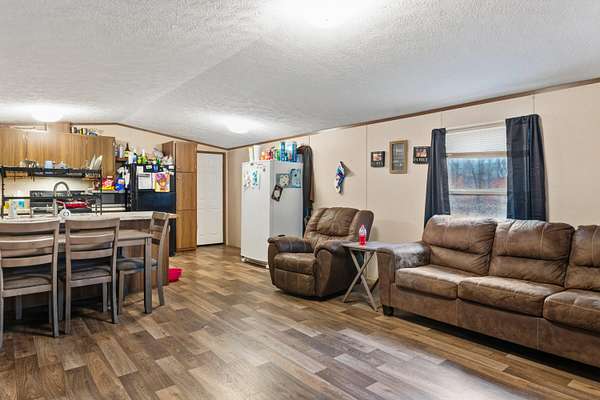 Enjoy the freedom of country living on over 4.5 acres in Webster County with a Conway, MO address. Located off a secluded gravel road less than 3 miles from town, this 2021 single-wide manufactured home offers over 1,200 square feet of living space and no restrictions for the new owners!The circular drive has some additional parking adjacent to it. Come and go with peace of mind, knowing pets and kids have a fenced play area within clear view of the front deck. Enter the front door into the heart of this home, the open floor plan living area. The layout is functional, providing a comfortable gathering space with natural flow into the kitchen which offers ample space for everyday cooking and cleanup.To one side of the home, two bedrooms are positioned near a full bathroom and a ample central hallway. The hallway includes a generously sized laundry area with room to sort, fold, and move comfortably. This layout supports ease of use and practical living.Down the opposite hall, the primary bedroom is situated separately from the other bedrooms, creating a split floor plan that allows for added privacy. And of course the primary suite has its own bathroom and walk-in closet.This property is served by a private well and septic. The land is partially cleared with a mix of open ground and mature trees. Mostly level, with a gentle slope and mature trees, there's flexibility for a variety of outdoor uses with no known restrictions. Whether you're looking for space to hunt, start a hobby farm, or simply enjoy privacy and room to spread out, this property offers opportunity and versatility!