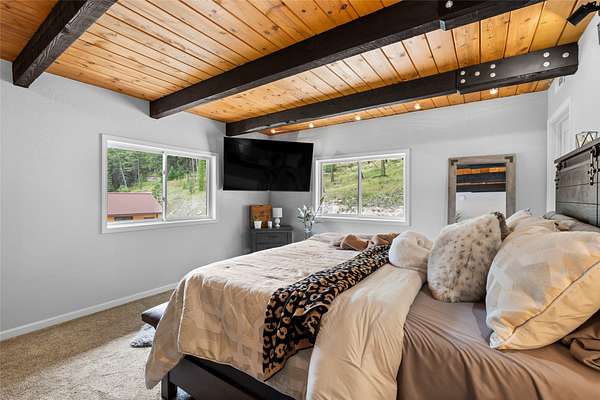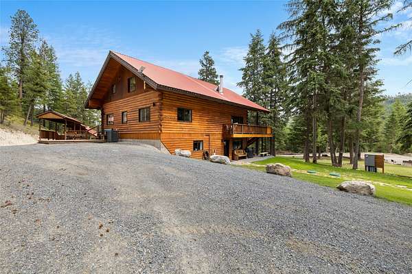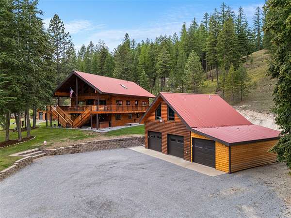 Welcome to 236 Merical Mountain Road; a beautiful and spacious retreat that was fully renovated in 2023. It sits on 25 private, wooded acres with a gated entrance. This log-sided home features vaulted ceilings, granite counters, a wood stove, custom wood cabinetry, and tiled bathrooms with modern updates. Enjoy peace and privacy from the balcony or enjoy time with friends around the campfire. A new 3,800 sf heated shop offers tons of storage space for business use or hobbies. A brand new, 600 sf apartment above the detached garage includes a kitchenette, three quarter bathroom, and closets- ideal for guests quarters or to use as a rental space. Additional amenities include a decked-out garage/workshop, greenhouse, fenced garden, dog kennel, and lots of additional parking. Whether you are homesteading, earning income, or living the Montana dream, this property is ready to deliver! See the attached feature sheet for more details on recent upgrades.