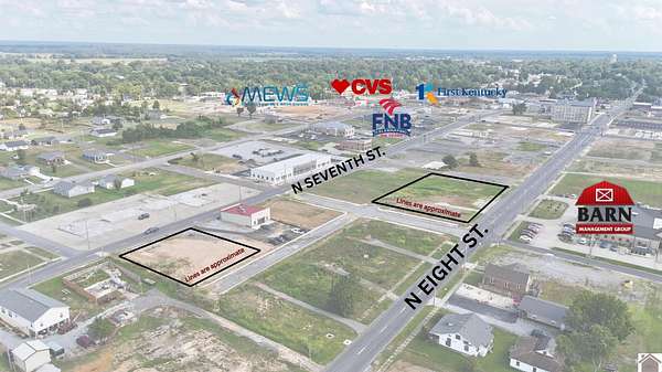 Est $450/moOpportunity awaits in the heart of Mayfield's upcoming Downtown District. This .29-acre lot at 236 N 8th St is surrounded by new construction as the city builds back stronger than ever. With high visibility and steady traffic, it's located near anchors like Barn Management Group, FNB Bank, CVS and First Kentucky Bank. This lot offers a prime location for your next commercial project in a district full of momentum. Utilities available.