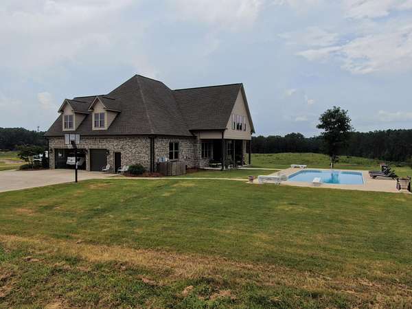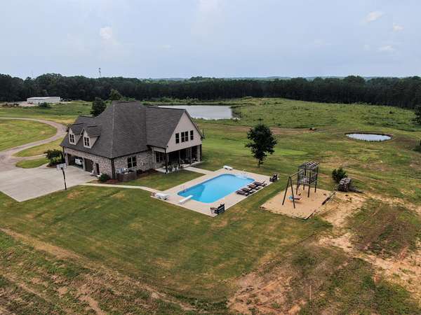 A rare find!! This 5br/4.5ba home spans over 4800sqft, nestled on over 62 acres! The main floor offers a private master suite with dual closets, a soaking tub, and a tile shower! There's also a guest suite with a private bath on the main floor. Upstairs offers three spacious bedrooms, two full baths, a den/study, and a large game room! A covered back with a fireplace overlooks the pool and large backyard! Extras include great attic space and a 3-car garage! There's also a detached 50x70 shop/garage with two roll-up doors, 2300sqft of shop space and 1200sqft of living space, 3br/1.5ba/full kitchen and living room! All info subject to verification