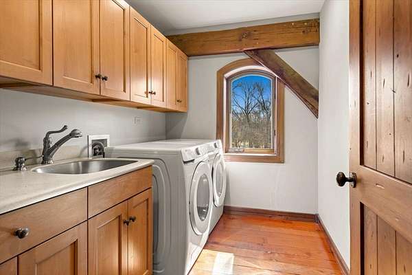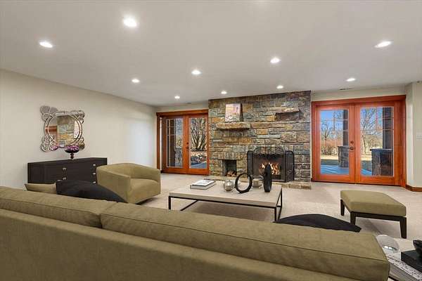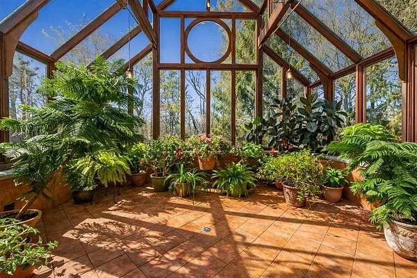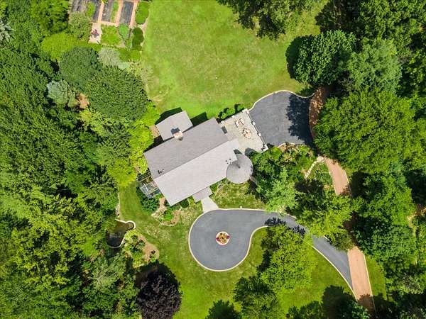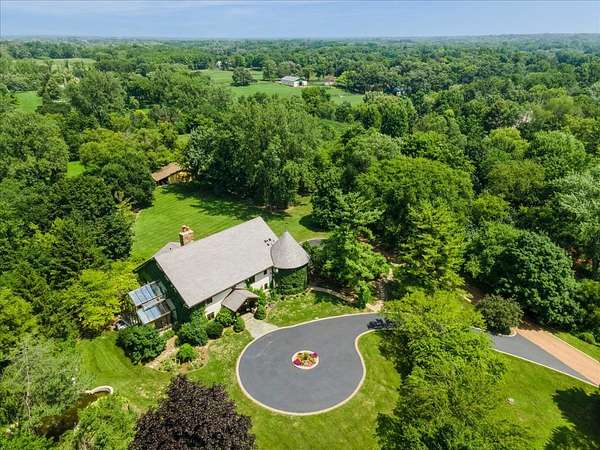 Welcome to this enchanting luxury retreat nestled in the heart of Barrington Hills! Set on 5.75 breathtaking acres, with a barn, fenced pasture, paddocks, and access to Barrington Hills riding trails, this one-of-a-kind estate is a dream for nature lovers and equestrian enthusiasts alike. Custom built by its original owner with exceptional craftsmanship and eco-friendly features, this elegant rustic residence evokes Northwoods charm with soaring vaulted, wood-paneled and beamed ceilings, a striking turret, and a thoughtfully designed floor plan that beautifully blends indoor and outdoor living, perfect for gathering and entertaining. Step through an arched entry into the dramatic two-story Great Room where a floor-to-ceiling stone wood-burning fireplace anchors the space. Double doors flank the fireplace, opening to a vaulted screened porch with panoramic views of the serene landscape. The seamless flow continues into the dining room, where double glass doors lead to the bluestone terrace, creating effortless indoor-outdoor living. The chef's kitchen is designed to impress, featuring two islands, granite counters, high-end appliances, and generous prep space. An adjacent office nook, powder room, and mudroom add convenience, while the main-floor family/media room offers the perfect setting for cozy movie nights. A true showpiece, the heated conservatory, with its vaulted glass ceiling and walls of windows, is ideal for year-round gardening or simply soaking in postcard-worthy views in every season. A main-floor bedroom with ensuite bath provides a private retreat for guests. Upstairs, a stunning staircase with custom wrought iron railing leads to a balcony overlook and inviting loft sitting area, perfect for curling up with a favorite book. The luxurious primary suite is privately situated and features a vaulted wood-beamed ceiling, private balcony for morning coffee, and a spa-inspired turreted bath complete with whirlpool tub, dual vanities, and walk-in shower. Two additional bedrooms with volume, beamed ceilings, a hall bath, and a conveniently located laundry room complete the second level. The walk-out lower level expands your living and entertaining space with a spacious recreation room anchored by a cozy fireplace and doors to the covered bluestone patio. Multiple gathering areas include a billiards/game room, playroom, exercise room, and a charming sitting area just outside the wine room. A fifth bedroom and full bath ensure ample space for family and guests. Outdoors, the extraordinary grounds continue to impress with an oversized two-stall barn, fenced pasture and paddock, and an impressive 7,000-square-foot enclosed garden filled with vegetables, herbs, and a variety of fruit trees. A three-car attached garage and new DaVinci composite slate roof (2023) add to the home's exceptional appeal. Lovingly and meticulously maintained, this remarkable property offers peaceful privacy with easy access to charming downtown Barrington, restaurants, shopping, Metra, and award-winning D220 schools. A truly one-of-a-kind luxury retreat, ready to welcome you home!