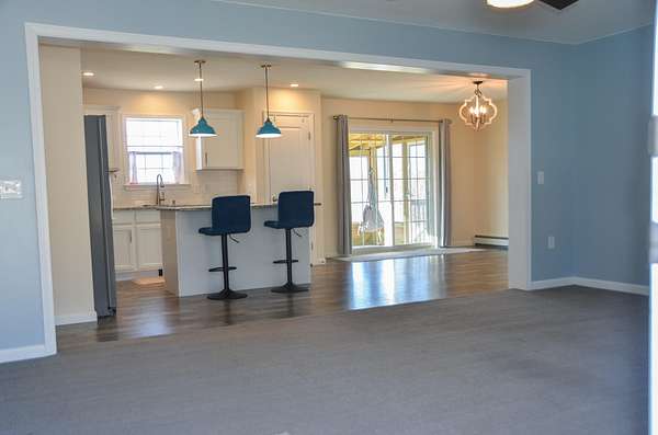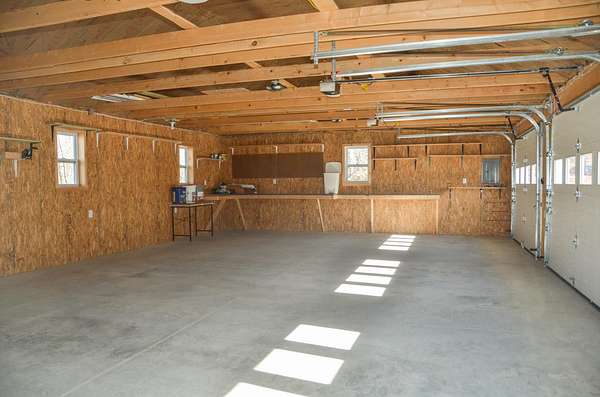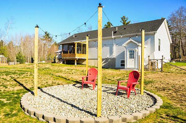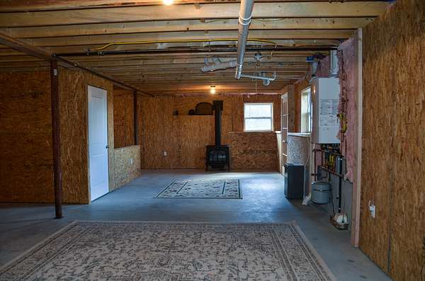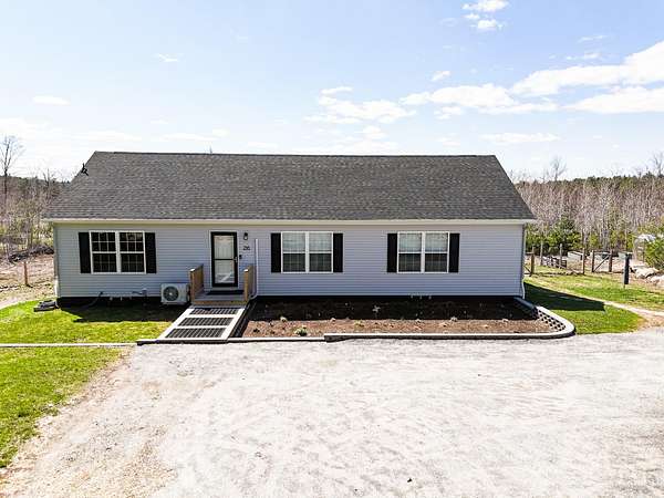 Picturesque country setting w gorgeous long-range views -- freshly painted, open-concept ranch offering easy one-floor living. 3 bedrooms & 2 full baths, including a spacious primary suite w private full bath w double sinks, smart Bluetooth light/fan, frosted-glass sliding barn door & double walk-in closets. Bright open concept living area flows to a 3-season sunroom. The kitchen is the center of the home w granite counter tops, energy saving appliances, statement lighting, pantry & island for your entertaining needs. Modern systems include a Wi Fi controllable heat pump, & keyless entry. Mudroom w laundry provides practical everyday convenience. Basement is just waiting to be finished & is insulated w AC2 concrete-contact lumber used on all concrete-contact walls; includes 2 built rooms (storage + craft), propane fireplace stove w remote that heats the basement, & convenient mechanical access. Outside you will find the garage/shop complex: 3-car garage w smart openers, shop bay w 20A circuits (remaining outlets 15A), insulated & heated by a Big MAXX propane heater; outside garage lights controllable by Bluetooth two-way switch. All garage openers are smart-control enabled. The garage also includes 2 kayak hoist systems, 2 outside outlets plus a 30A RV outlet & a 35-foot RV parking spot, storm door on side entry, & additional keyless entry. Also a whole house on demand generator helps keep peace of mind! Outdoor amenities designed for country living & low-maintenance enjoyment: fenced backyard w 3 gates, front block wall garden w drainage, greenhouse, three raised beds, rain/water containment tank, 6×8 storage tent, dedicated grill area, & a beautiful block-and-river-stone firepit area w solar lighting. Landscaped w native plants, trees, wild blueberries & lady slippers. A turnkey blend of smart-home convenience, workshop capability, & exceptional outdoor living in a serene country setting.