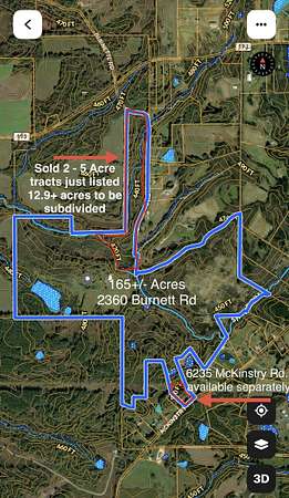 Secluded 165+/- Acre Recreational Property with Abundant Wildlife and Recently Cleared Trail System. Great Potential for Development. Currently part of 165+/- Acre Parcel this Property offers 3 Ponds, with the largest being 4 acres, creating an ideal Homesite. Fenced/Cross Fenced. Sandy bottom, Shaw's Creek runs through a portion of the property. 1900's - 1700+ sq ft 3BR farmhouse (being sold as-is). 60X100 Pole Barn and additional barn. Multiple Purchase Options - Also, available to be subdivided from tract w/separate listing 6235 McKinstry Rd., additional 2.2+/- acres with pond, 1976 - 2500 sq ft house ($299,900). Recently sold 10+ acres with another 13+/- acres available for purchase ($159,900) with seperate MLS listing on the North "finger". Contact the Listing Agent or your Realtor today for a private tour of the property. PRIVATE PROPERTY - NO ACCESS W/O REALTOR. DO NOT CONTACT SELLERS.