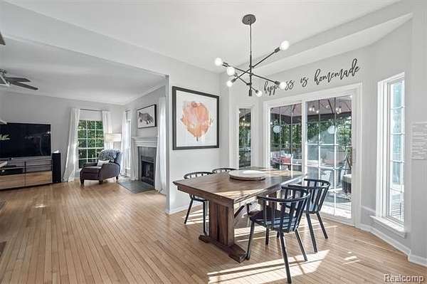 Step inside to a bright, open layout featuring a stunning kitchen with stone countertops, a large island, double ovens, and a stylish backsplash--an ideal space for cooking and gathering. The sunny dining area flows into a warm and inviting family room with a fireplace and elegant crown molding, creating the perfect atmosphere for everyday comfort or entertaining.