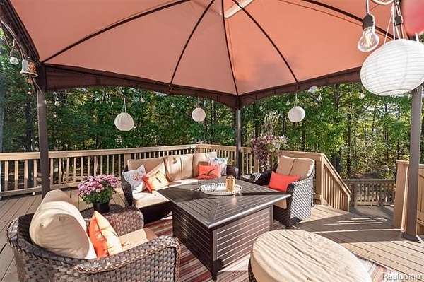 Outside, your private retreat begins: enjoy wooded views, a peaceful pond with fountain, a large deck, fire pit area, and plenty of room to play, unwind, or entertain. This is the outdoor lifestyle buyers dream of.