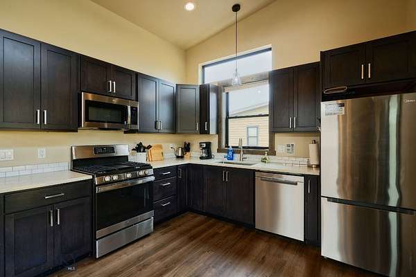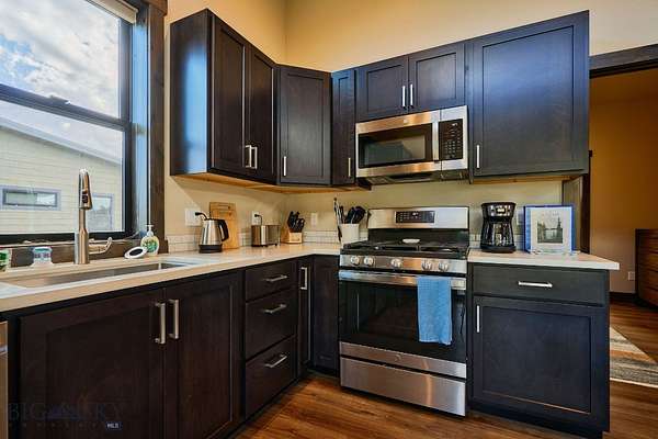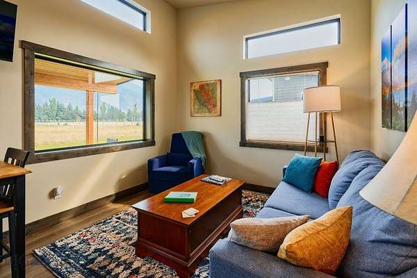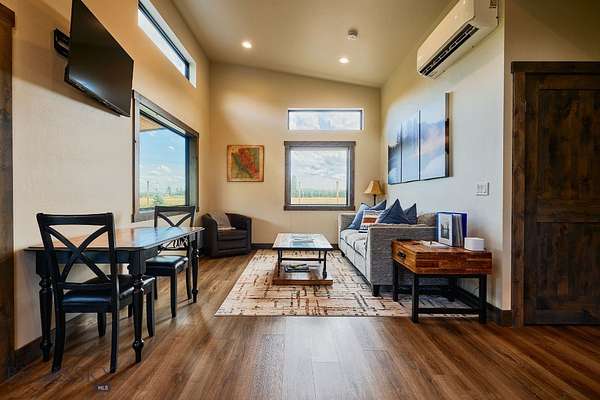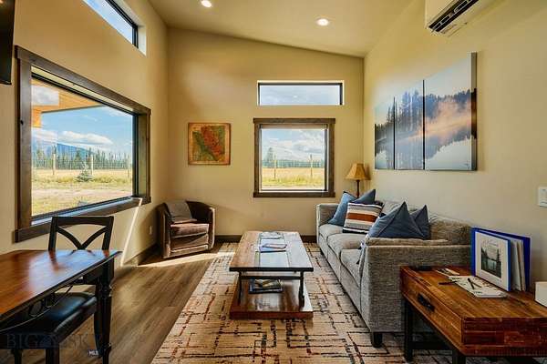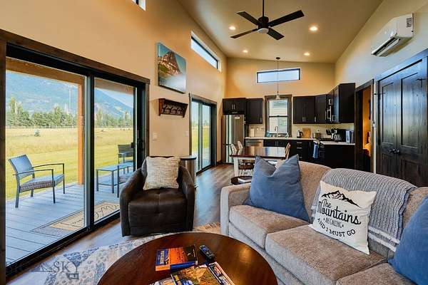 Columbia Mountain View Cabins- Located only a 20-minute drive from the west entrance to Glacier National Park, six stylish quality constructed cabins are offered turnkey. Four of the cabins are 840 sq ft with 2 queen bedrooms, each with its own en-suite bathroom & 2 cabins are 1 bedroom with a full bath. The cabins feature open living & kitchen areas boasting high ceilings, a cozy gas fireplace & sliding glass doors leading to a front porch with stunning Swan Mountain views. Additionally, the cabins have modern, high-quality finishes including stainless steel appliances & luxury vinyl plank flooring throughout. Each unit is equipped with an efficient heat pump system for both heating & cooling. Enjoy the beautiful mountain views from the covered porches. The property includes green space with a sprinkler & drip irrigation system, plus a detached 32x42 garage/ shop. Short-term rental bookings have begun to be placed. The 21 acres is surrounded by farmland & has plenty of space to consider adding more cabins, RV spaces or multi-generational family residences. With plenty of space & scenic views, this property could also be developed into a popular event or wedding venue. Don't miss this incredible opportunity! Located in the heart of Flathead Valley, just 5 minutes from Columbia Falls, the cabins are the perfect basecamp for Montana adventures-whether you're skiing, hiking, fishing, or exploring local shops & artisan spots. The location is only 15 minutes from Glacier Airport, 20 minutes to Whitefish, 20 minutes to Kalispell, 25 minutes to Bigfork, & Flathead Lake.