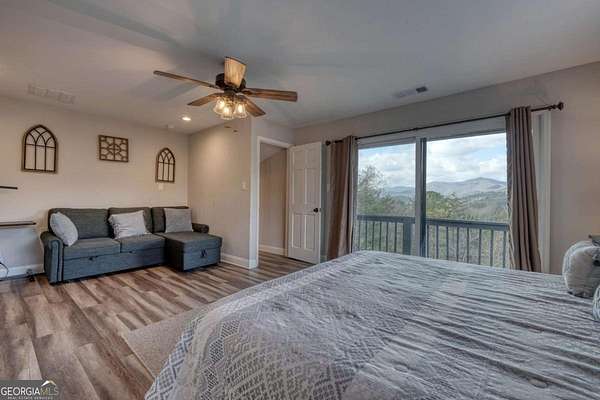 Discover this beautiful previously renovated 6-bedroom, 4-bathroom retreat, being sold furnished and perched on 7.5 acres with sweeping long-range mountain views. Featuring two HVAC systems, metal roof with prior upgrades to the electrical and plumbing, and two hot water heaters, this home seamlessly merges contemporary convenience with serene surroundings. The kitchen shines with stainless steel appliances, granite countertops, and ample space for entertainment. Savor the ever-changing seasons and long-range mountain views from the inviting sunroom. Large main and second-floor bedrooms have large ensuites & offer private access to expansive porches through sliding doors, each framing the stunning views, while the finished terrace level impresses with a wet bar, entertainment area, 2 bedrooms & baths. With generous space to personalize, maintained landscaping, firepit, hot tub and plentiful parking, this retreat is perfect as a full-time home or weekend getaway. Currently operating as a short-term rental with no rental restrictions, it's ready for immediate use. Ideally situated near Helen, Hiawassee, Blairsville, and Hayesville, it's just minutes from Lake Chatuge, with Appalachian hiking trails, rivers, wineries, and the Georgia Mountain Fairgrounds all nearby.