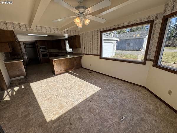 Beautifully situated on 5.28 private acres, this 4-bedroom, 3-bath home offers the perfect blend of space and serenity. The flat, usable land is dotted with mature trees and provides a peaceful, private setting. Enjoy the outdoors from the covered wrap-around porch, ideal for relaxing and taking in the surroundings. Inside, the living room features a cozy wood-burning stove, while built-ins add both charm and functionality. A bonus/flex space upstairs is perfect for a craft room, home office, or additional living area. The property also includes a 2-bay shop and the convenience of two hot water heaters. A rare opportunity for acreage, privacy, and versatility.