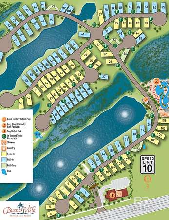 Welcome to Site 36 at Buena Vista Motor Coach Resort--a premium RV site offering a blend of luxury and outdoor living. This beautifully landscaped pull-in lot features a custom covered pavilion with golf cart garage/storage area, a fully equipped outdoor kitchen for entertaining with granite counters, a built-in grill with side burner and stainless farmhouse sink. The site also features a custom fire pit overlooking the resorts eco-feature, perfect for relaxing evenings under the stars. Included in the sale is coordinating polywood furniture to enhance your outdoor experience.With full hookups and ample space for dining and relaxation, this site is ideal for enjoying the best of Orange Beach. Site 36 is located near the third pool and two pickleball courts, making it a great location for rentals and close proximity to all of the fun. Buena Vista Motor Coach Resort is a luxury motorcoach resort located across the street from the white sandy beaches of the Gulf of Mexico. The resort is restricted to Class A and Super C motorcoaches only, 32' and longer and 15 years or newer. Buyer to verify all information during due diligence.