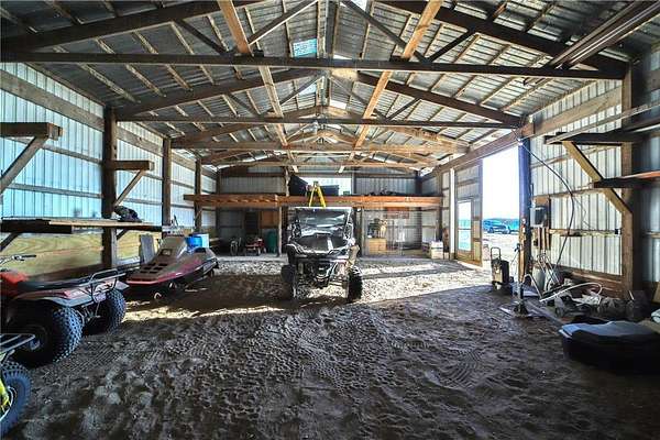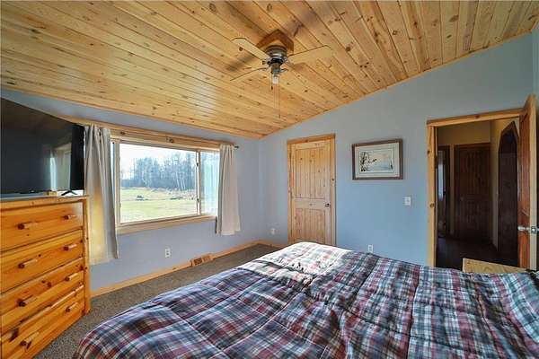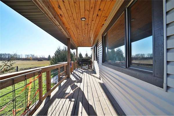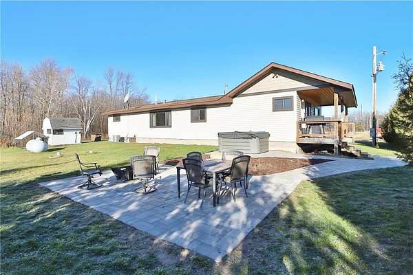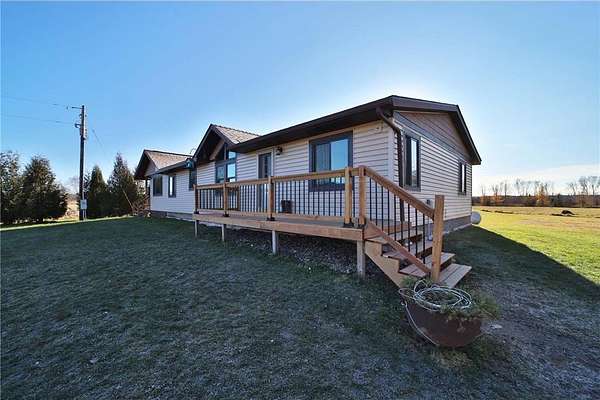 Are you looking for country living at its absolute finest? This thoughtfully maintained and updated 3-bedroom, 2-bathroom home sits on a sprawling 51 acres with frontage on the natural environmental lake, Rice Lake. Whether you need space for horses, livestock, chickens, or expansive gardens, this property offers it all. Enjoy the large kitchen with new appliances (including a gas range), a walk-in pantry, and a dedicated dining room. The home also features a large mudroom/laundry, a spacious en-suite bathroom off the primary bedroom, beautiful tongue-and-groove finishes, warm wood accents throughout, and ample storage. On the new paver patio, enjoy morning coffee or unwind in the evening around the fire pit or in the hot tub. You'll also find a new roof installed just six months ago. Storage abounds! The pole barn was recently enclosed, paved, insulated, and sided, and features wood heat, complete with an additional room perfect for wood storage or an office. The additional barn is ready for livestock, additional workspace, or extra storage. Ample pasture space provides plenty of room for grazing or hay, and the charming chicken coop is fully prepared and ready to welcome your hens. This property truly offers it all: a well-cared-for home, hard to find acreage, functional outbuildings, and a backyard oasis perfect for both relaxation and entertaining.