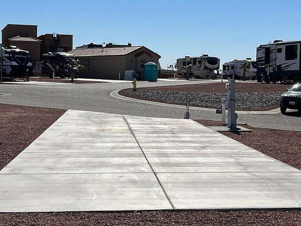 Own your own RV Lot with the most amazing views in Bullhead City! The lot comes complete with full hookups and a cement pad. This lot is suitable for Motorhomes and Coaches only, as it is a pull-in only space. Casitas and RV covers may be built, subject to Resort Architectural approval. Community amenities include two swimming pools, a jacuzzi, a fitness center, wood woodworking shop, a hobby room, a library, a game room, a community center, a community BBQ area, pickleball courts, a dog park, and public laundry and bathroom facilities. Come make Vista Del Sol's 55+ community your home or your home away from home!