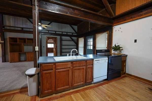 This is one of those "once in a lifetime" chances to live in a historic barn on a beautiful, wooded acreage with a pond. What else does someone seeking a serene country lifestyle need? The drone pictures are stunning. The land is perfect for hunting & fishing & walking. Across the back of the home, the deck & windows overlook a charming pond. 10 acres +/- one of the most unique homes you've ever seen. 2 areas that can be used as 2 different private suites (one upstairs & one on the main level). 1 full bath upstairs & 2 baths on the main floor. Laundry is on the main floor, so single-level living (and the relaxing days of taking in the country views & sunsets) are a very real possibility. Bring your imagination & your dreams to start planning your improvements. You've got wide-open spaces to enjoy as a huge kitchen & dining area, in addition to a wide-open area for gathering. BUT THERE'S MORE! The full basement (unfinished) has the charm of stone walls & gorgeous beams, featuring taller ceilings and a walk-out patio opening to the pond area. If you're looking for a vacation home or short-term rental or a place for the big ole family to gather, you've got plenty of room to set up several (non-conforming) sleeping areas. She's not perfect yet, but she has ALL the potential that you need!