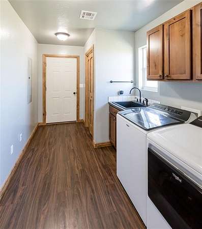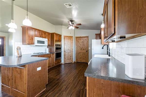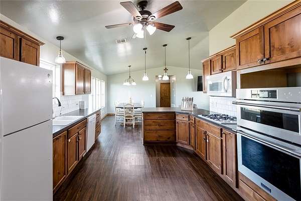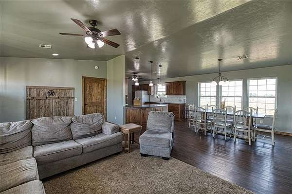 This beautifully custom built home sits on 7.4 acres MOL between Custer City and Thomas. The home boasts 3 bedrooms and 2 full bathrooms with an additional (not included in square footage) bedroom or office space accompanied by a full bathroom iff the garage. The additional space could also be considered a "mother-in-law suite", complete with its own washer and dryer hook ups and heat and air. The main portion of the house has custom built doors and trim made of solid wood. Oversized hallways and doorways give plenty of room to go in and out. The kitchen opens up into the dining and living room space with ample natural light. With being built in 2019, the home is a fairly new build. The property is ran on a well, with new wiring, and propane along with a septic tank, recently pumped. Water softner will stay with the home along with several outbuildings. This homestead is turn key and awaiting its new owners! Seller is offering a $5,000 credit to buyer for a new dehumidifier installation in crawlspace.