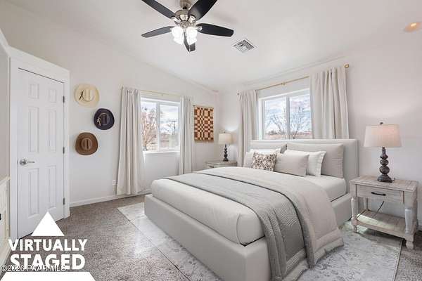 Highway 89 to East Perkinsville Road, Left on Road 1 East, Right on E Red Cinder Rd, veer Left to continue on Red Cinder, Left on Kachina to home on Right