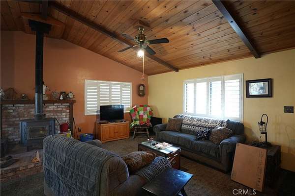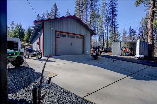 Enjoy peaceful living in this charming single-story home surrounded by the natural beauty of the Sierra foothills. Inside, you'll find an open-concept living area with tile flooring, cathedral ceilings, recessed lighting, and a cozy gas-log fireplace. The kitchen is fully equipped with ceramic countertops, a dishwasher, disposal, microwave, gas oven, and refrigerator. An inside laundry room adds everyday convenience. This home offers 2 bedrooms, both featuring tile flooring, ceiling fans, and sliding closet doors. Outside, you'll appreciate the extra space and storage provided by a shed, a shop, and two storage containers. The property also includes a private well and septic system, and a washer and dryer. Located just minutes from Pine Mountain Lake, the golf course, local dining, and Yosemite's incredible outdoor activities, this home offers comfort, convenience, and plenty of room to enjoy.